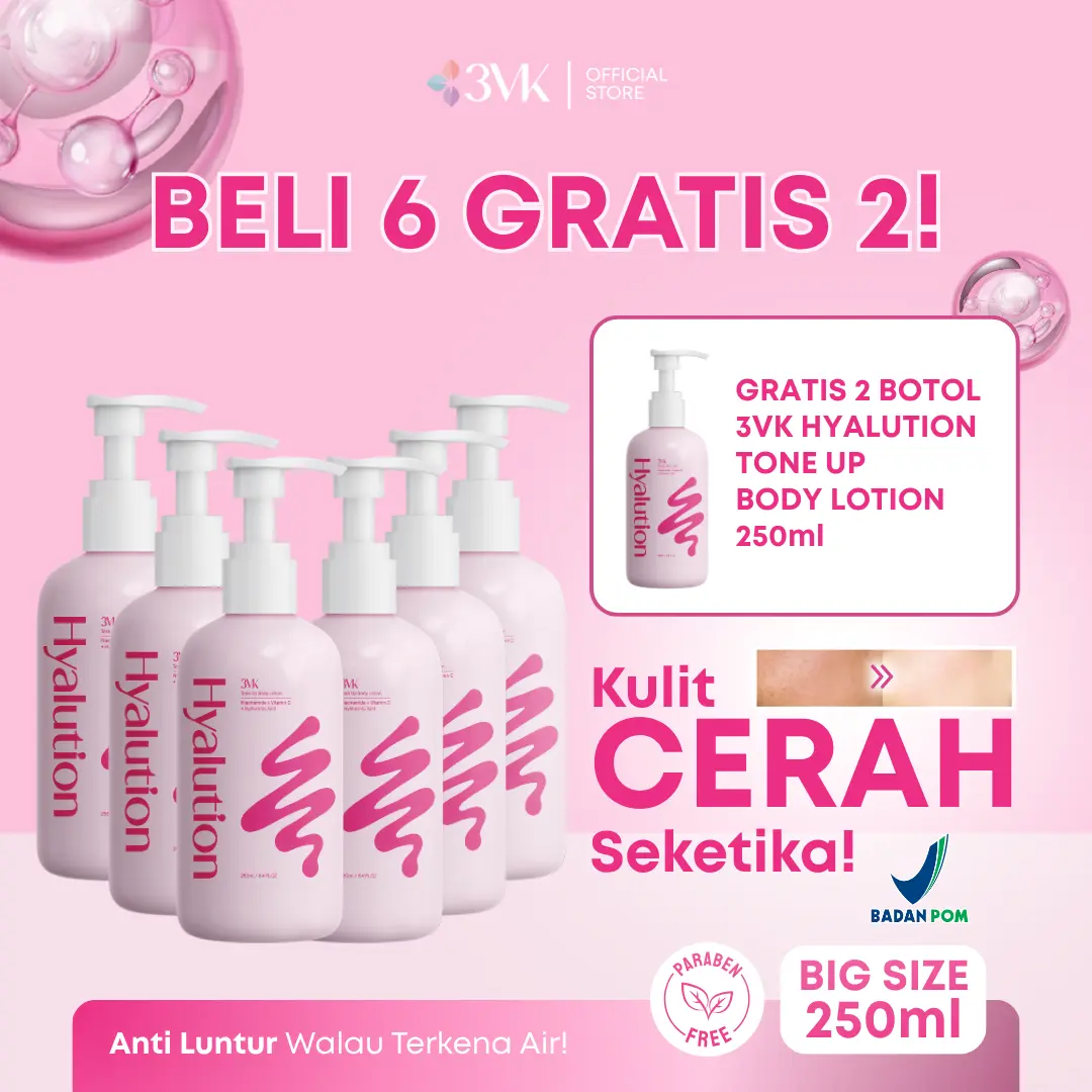 ⨠[BELI 6 GRATIS 2] 3VK Hyalution Tone Up Body Lotion 250ml â¨