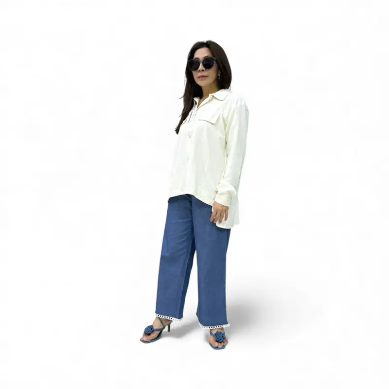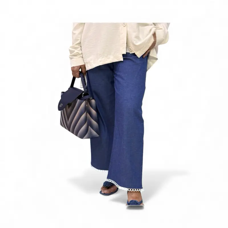 Celana panjang Novia simple dan elegan, terbuat dari kain katun semi jeans.