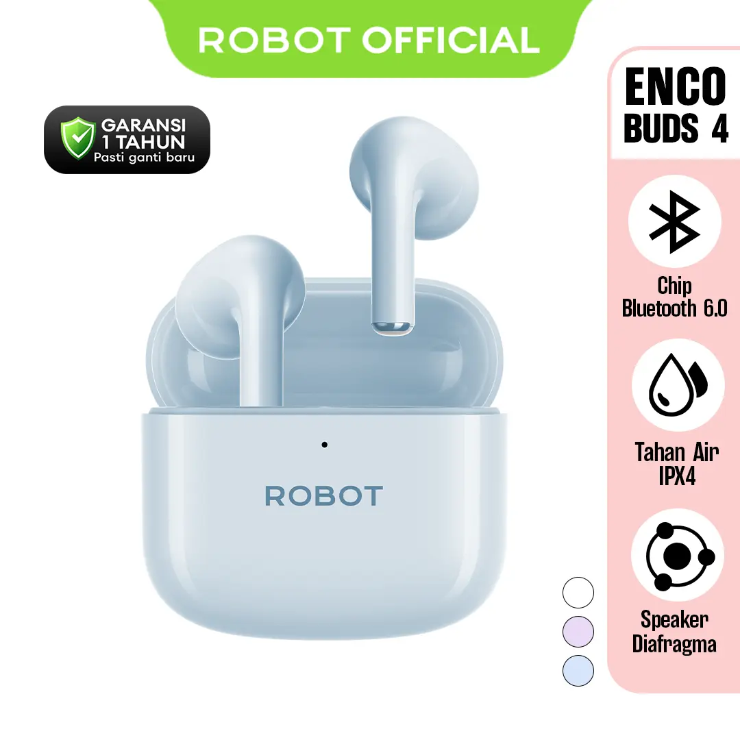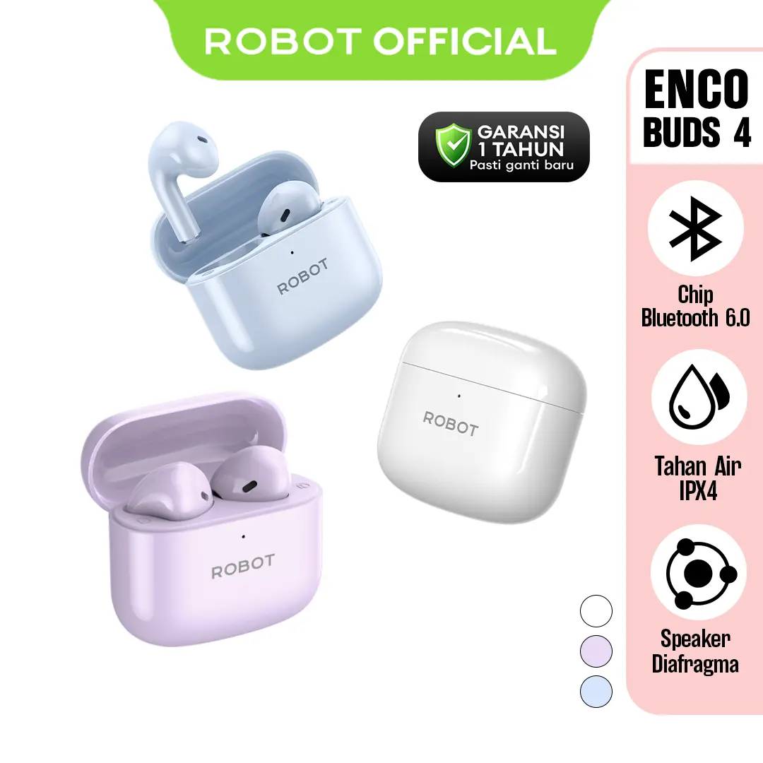 ROBOT Enco Buds 4 TWS Earbuds Headset Airbuds Earphone Wireless Bluetooth 6.0 Setengah In-Ear 28 Jam Baterai Tahan Air IPX4 Bass Kuat - Garansi 1 Tahun - Bisa COD