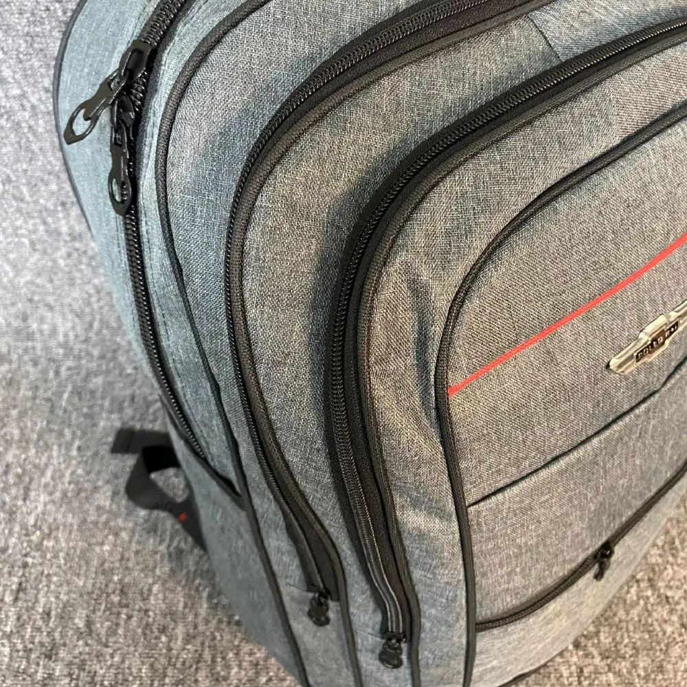 * Fitur: Free raincover, 4 ruang, sekat untuk laptop, kantong samping untuk minuman.