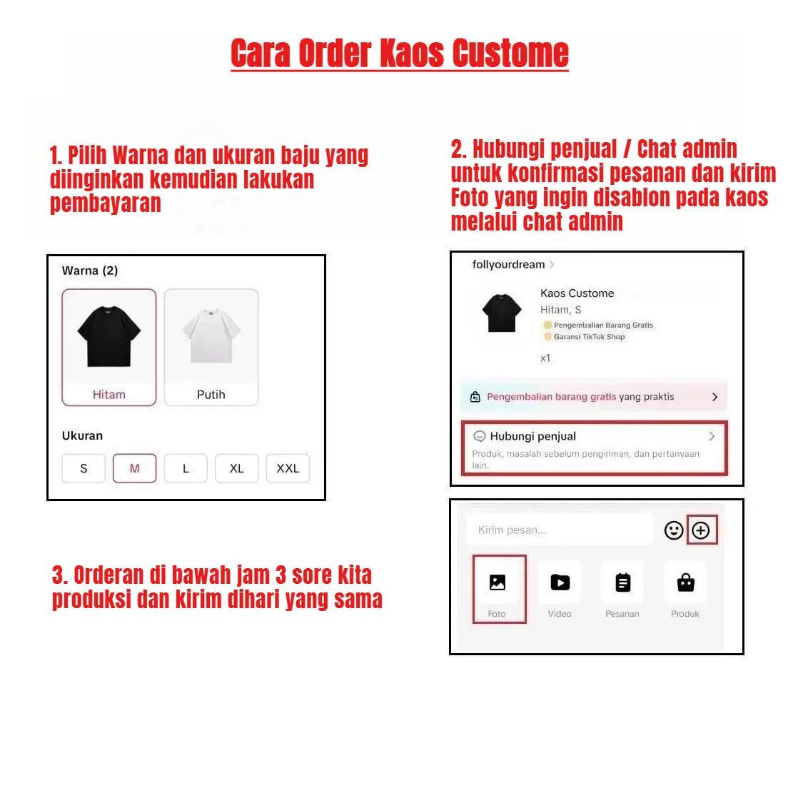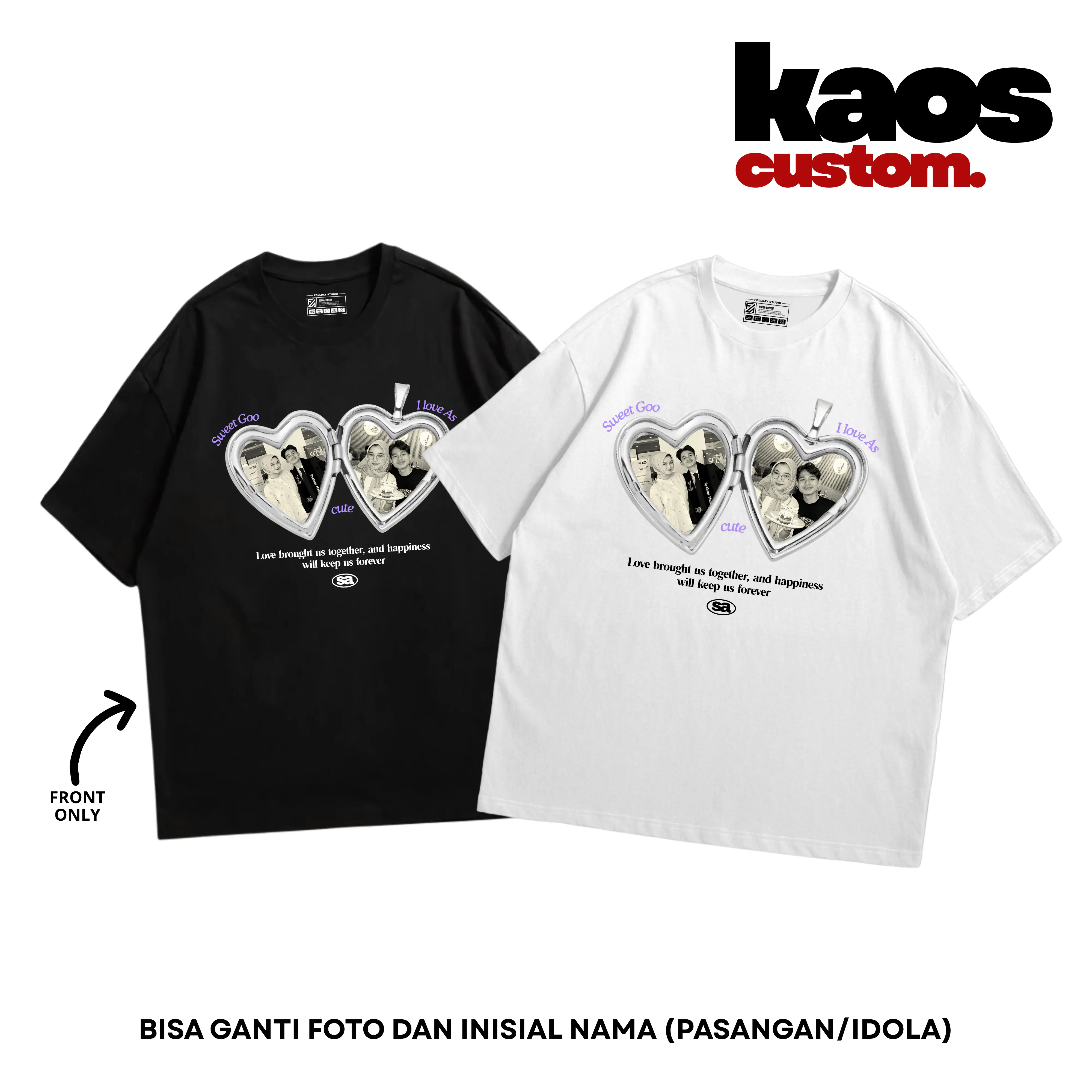 Dengan kaos ini, Anda dapat mengganti foto dan inisial nama pasangan. Fleksibilitas ini memberikan kesempatan untuk menyesuaikan kaos dengan keinginan Anda. Tidak bisa di retur/tukar jika kesalahan karena tidak mengikuti cara order. Orderan dibawah jam 3 kita proses dihari yang sama.