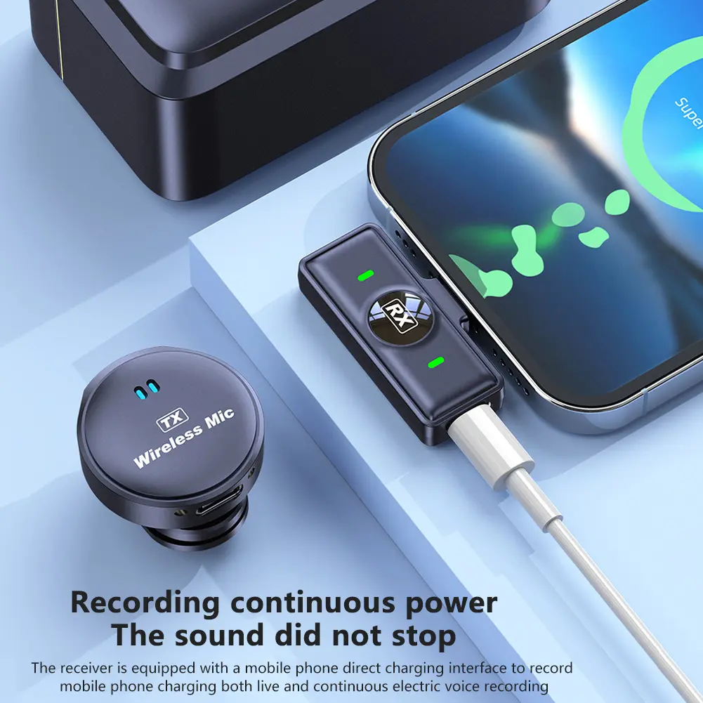 [Desain Ultra-Kecil dan Tak Terlihat] Pemancar berbentuk tombol ini ringan dan ringkas, sehingga dapat dijepitkan secara diam-diam di kerah atau bagian dalam pakaian Anda, memastikan streaming langsung yang lancar dan gambar yang jernih dan indah.