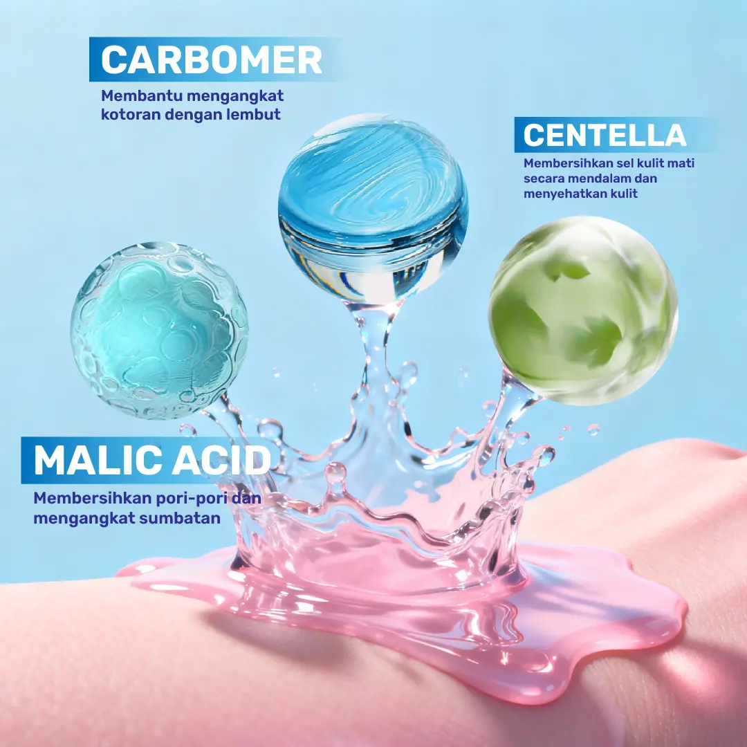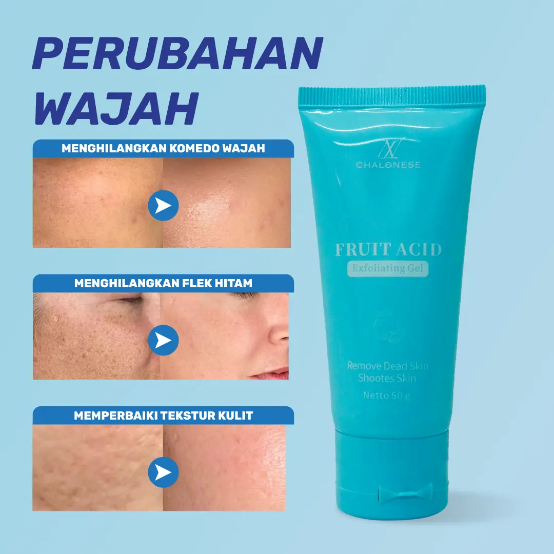 Chalonese Centella Exfoliating Gel diperkaya dengan AHA/ BHA /PHA yang dapat membantu menghilangkan bekas jerawat,mengangkat sel kulit mati, serta menjaga penuaan dini pada kulit dan mengandung Allantoin yang dapat bertindak sebagai Emolien untuk membuat kulit terjaga kelembapannya dan mencegah kekeringan serta iritasi ditambah kandungan Centella Asiatica yang dikenal mengandung Flavonoid dan Asam amino yang tinggi untuk membantu menjaga kesehatan kulit seperti melembabkan dan memberi rasa sejuk bagi kulit.