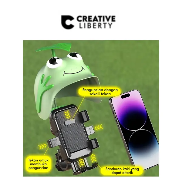 Phone Holder Sepeda/Motor Model Helm Imut Universal & Stabil / Bracket HP Sepeda/Motor Model Helm Katak – Holder Ponsel 360° Anti Goyang