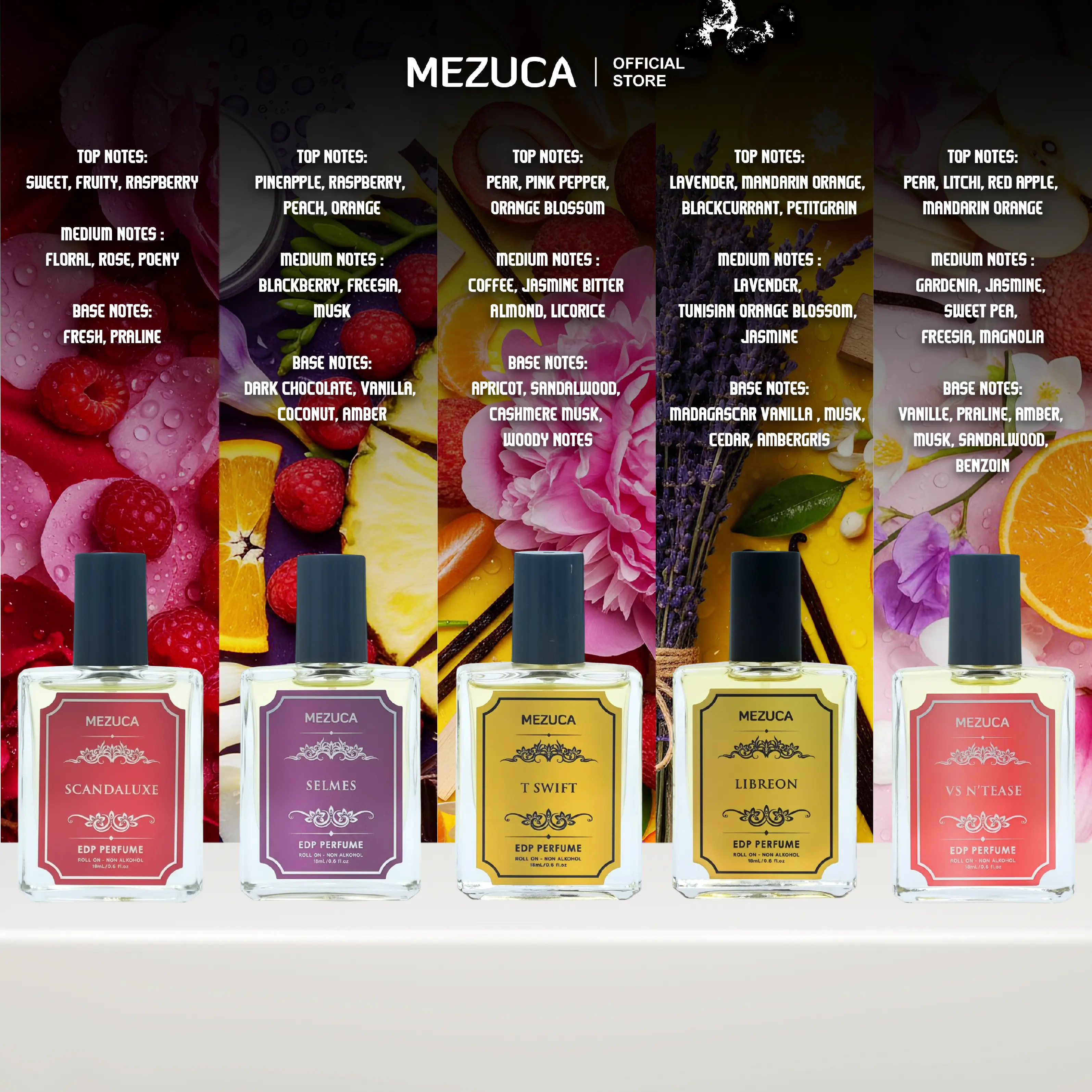 Nikmati kesegaran dan keharuman eksklusif dengan Parfum Mezuca EDP! Hadir dengan 15 varian aroma inspirasi dari produk brand terkenal, parfum ini dirancang untuk menemani aktivitas Anda dengan wangi yang tahan lama dan memberikan kesan elegan sepanjang hari.