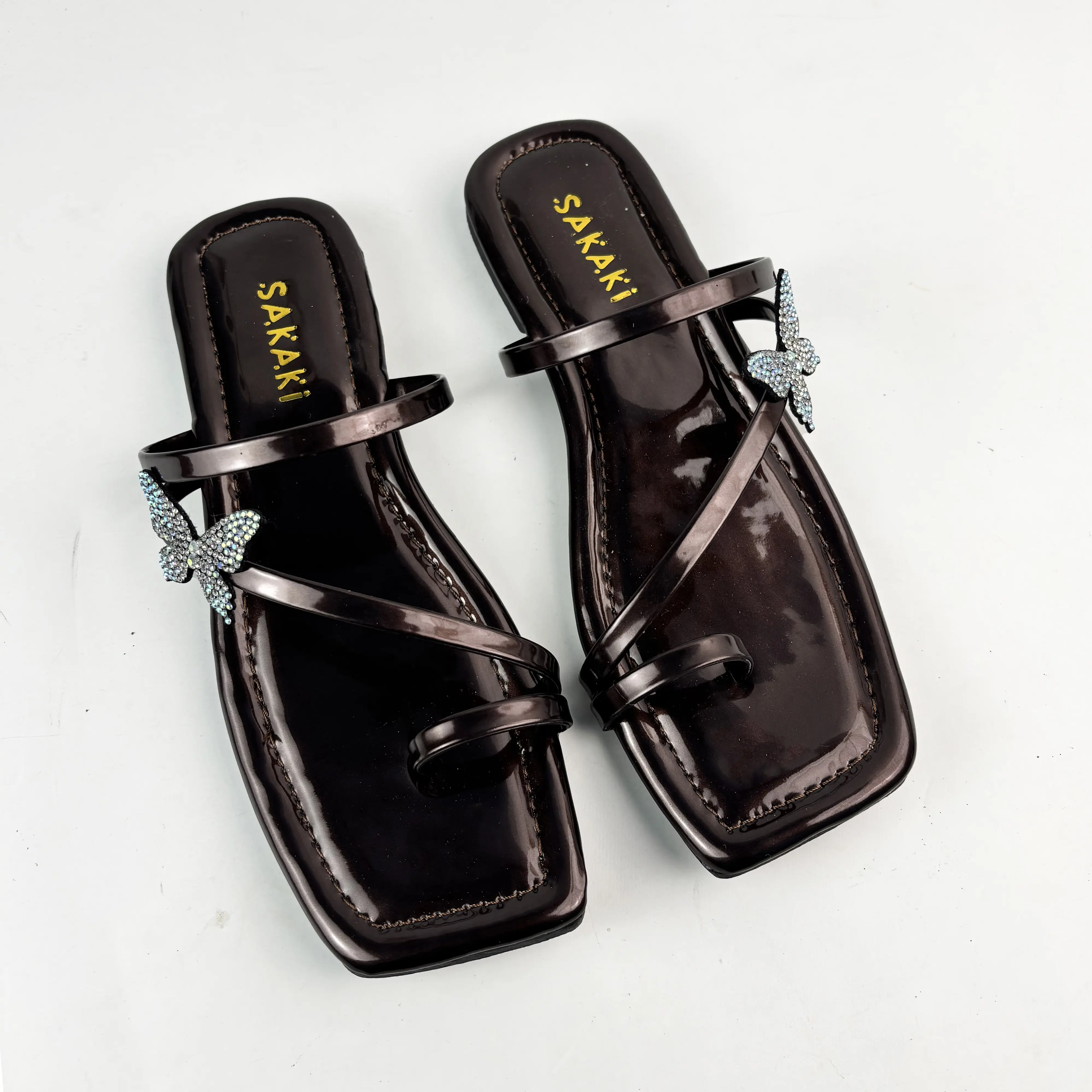SAKAKI Lala - Sandal Teplek Wanita Size 37-42 Tali Strap Polos Kekinian Elegan Flat Datar Glossy Nyaman untuk Penggunaan Sehari-hari
