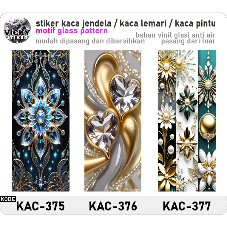 Stiker Kaca Jendela/Pintu Motif Artistik Bahan Vinil Glosi Anti Air (pasang dari luar, bisa request ukuran)