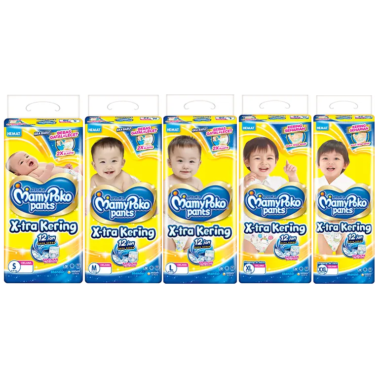 Mamypoko xtra kering hadir dalam berbagai ukuran. Pilih ukuran L yang sesuai untuk si kecil. Popok ini dirancang untuk kenyamanan dan keamanan bayi Anda.