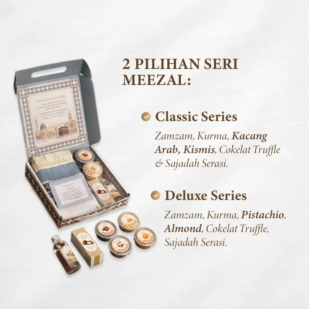 MEEZALL Deluxe = Sajadah Premium + Air Zam-zam + Kurma + Coklat Truffle + Pistachio + Almond