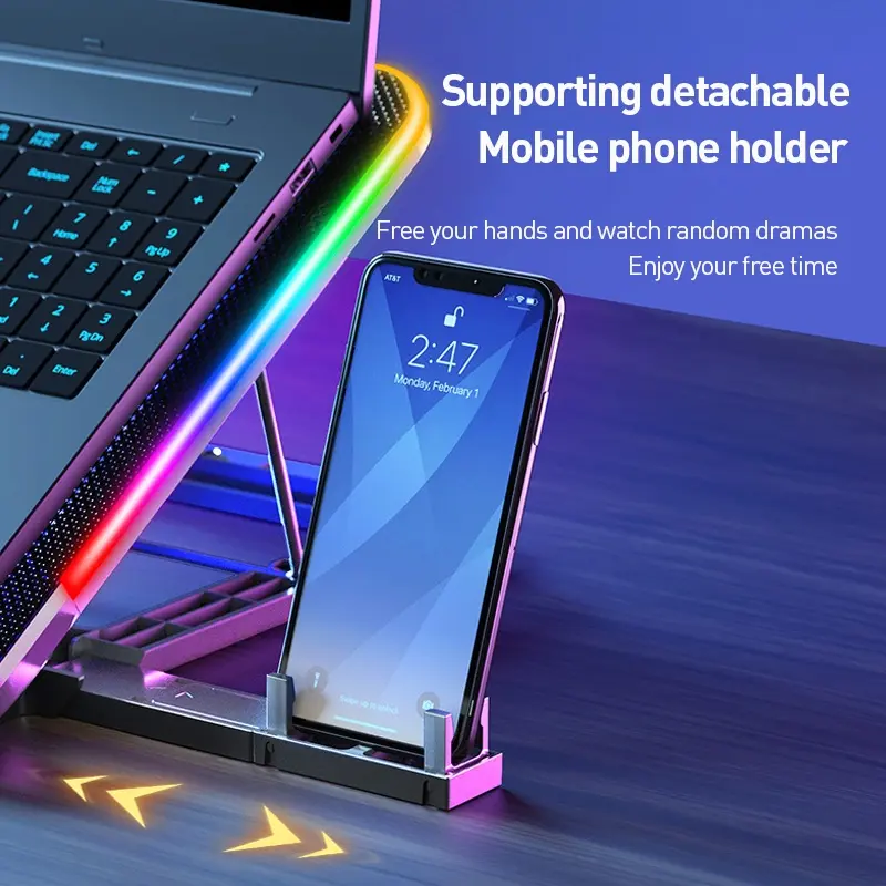 ~6fans Adjust:6 fans LED membuat pembuangan panas lebih cepat, kipas memiliki lampu LED built-in, kontrol tampilan LCD, dan kecepatan kipas dapat disesuaikan kapan saja.