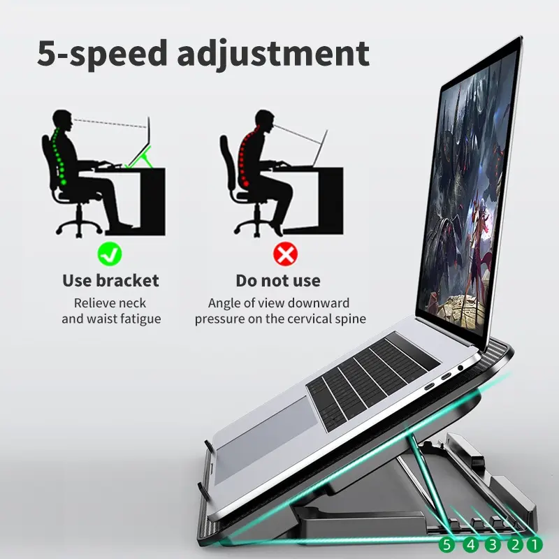 ~Dudukan anti-selip dengan penyangga anti-selip yang dapat dilepas dapat menampung laptop 9~17 inci