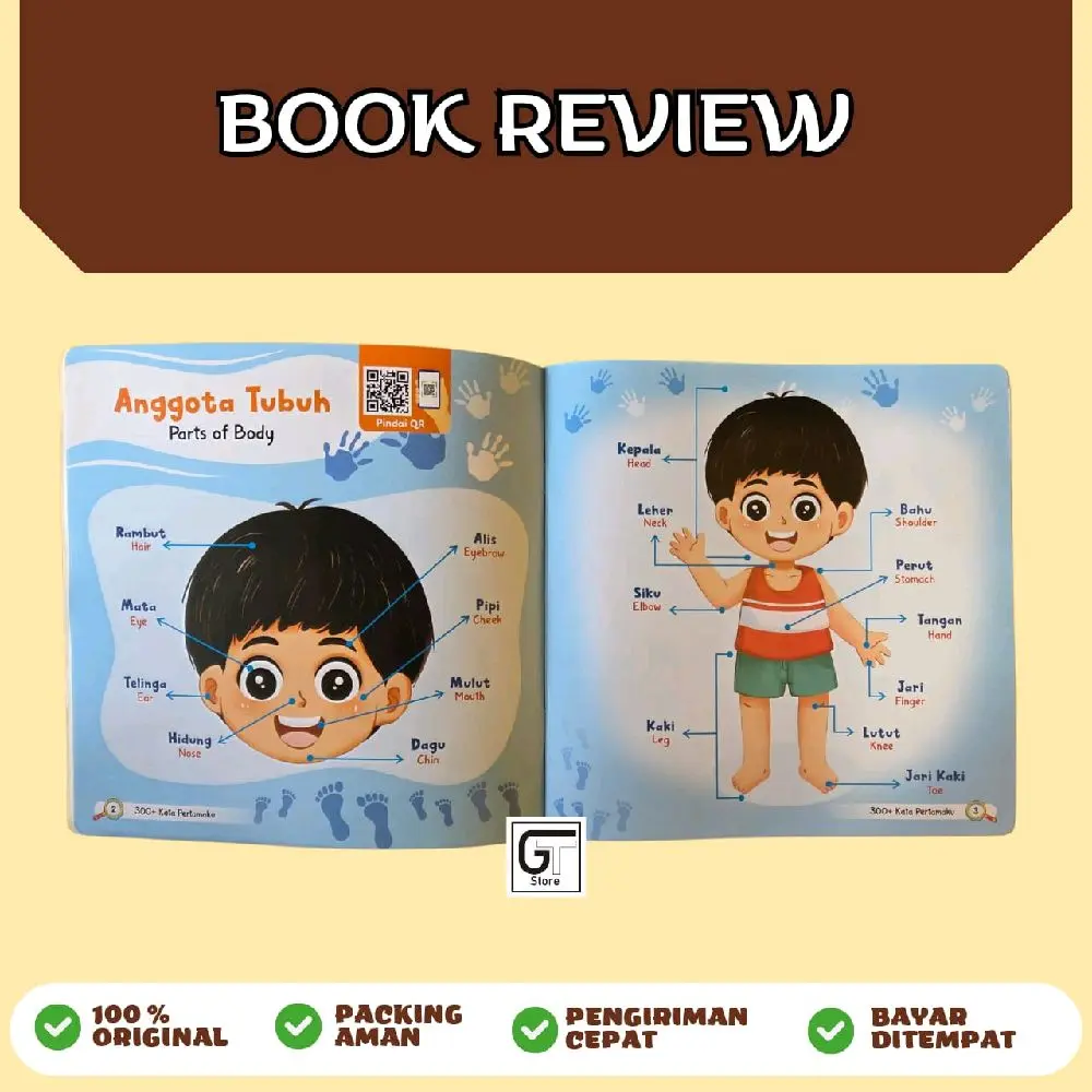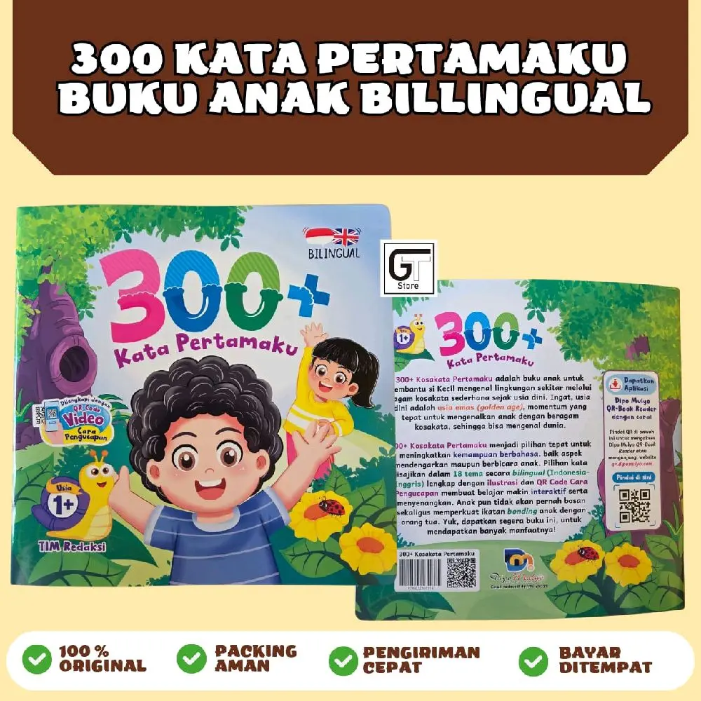 300+ Kata Pertamaku adalah buku edukatif interaktif yang dirancang khusus untuk membantu anak-anak usia dini mengenal dan mengingat kata-kata pertama mereka. Buku ini menggunakan dua bahasa: Indonesia dan Inggris (bilingual). Berisi 18 tema kehidupan sehari-hari seperti anggota tubuh, hewan, rumah, warna, buah, alam, dll.