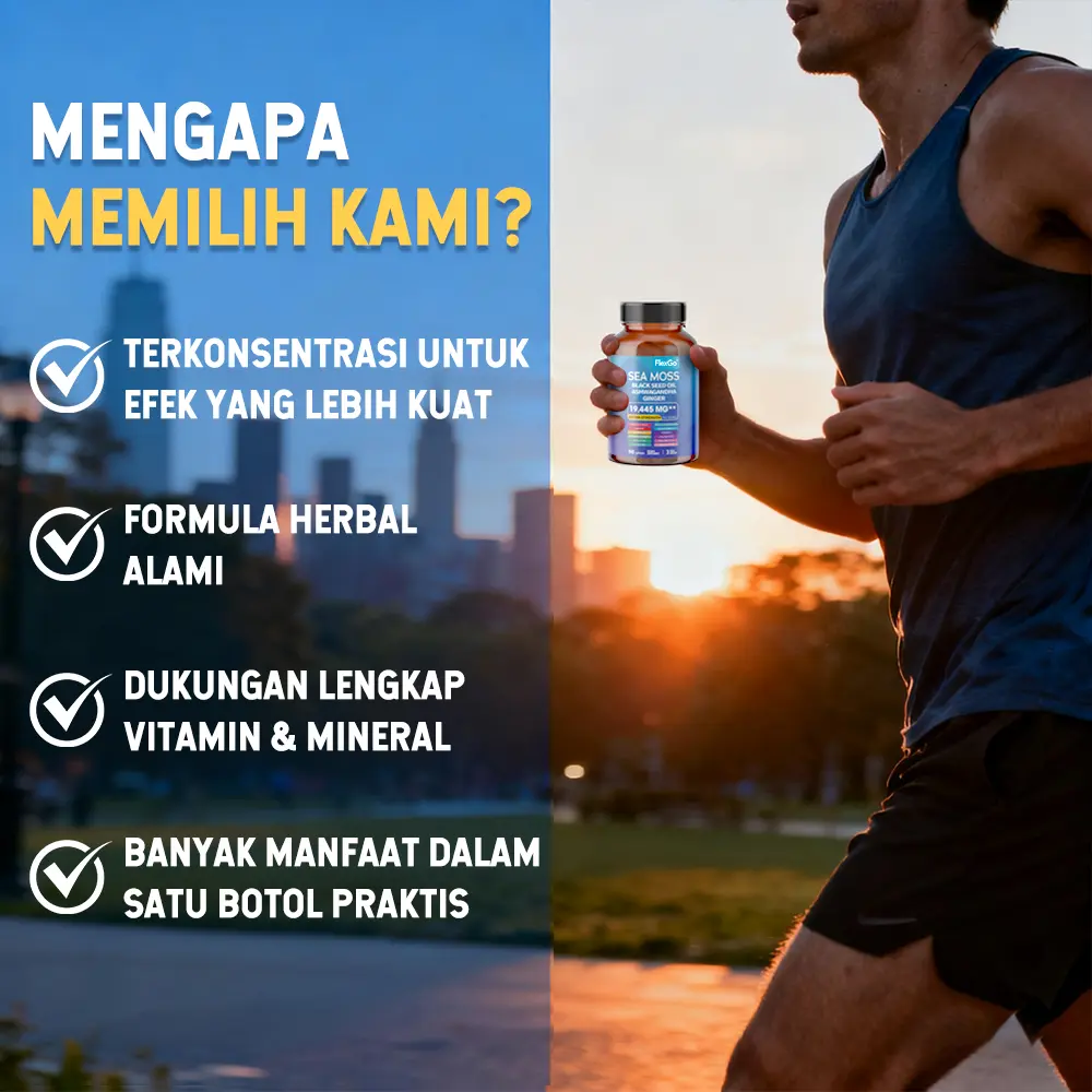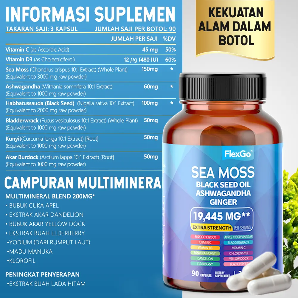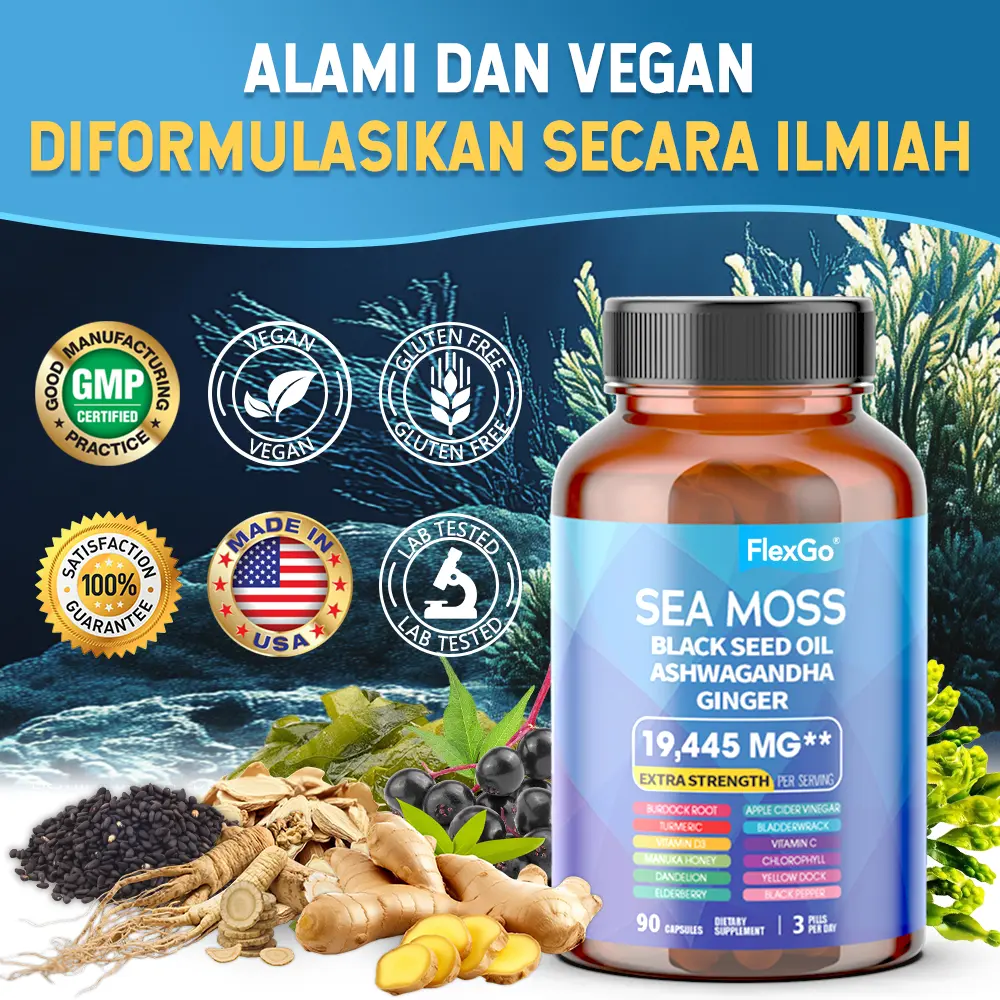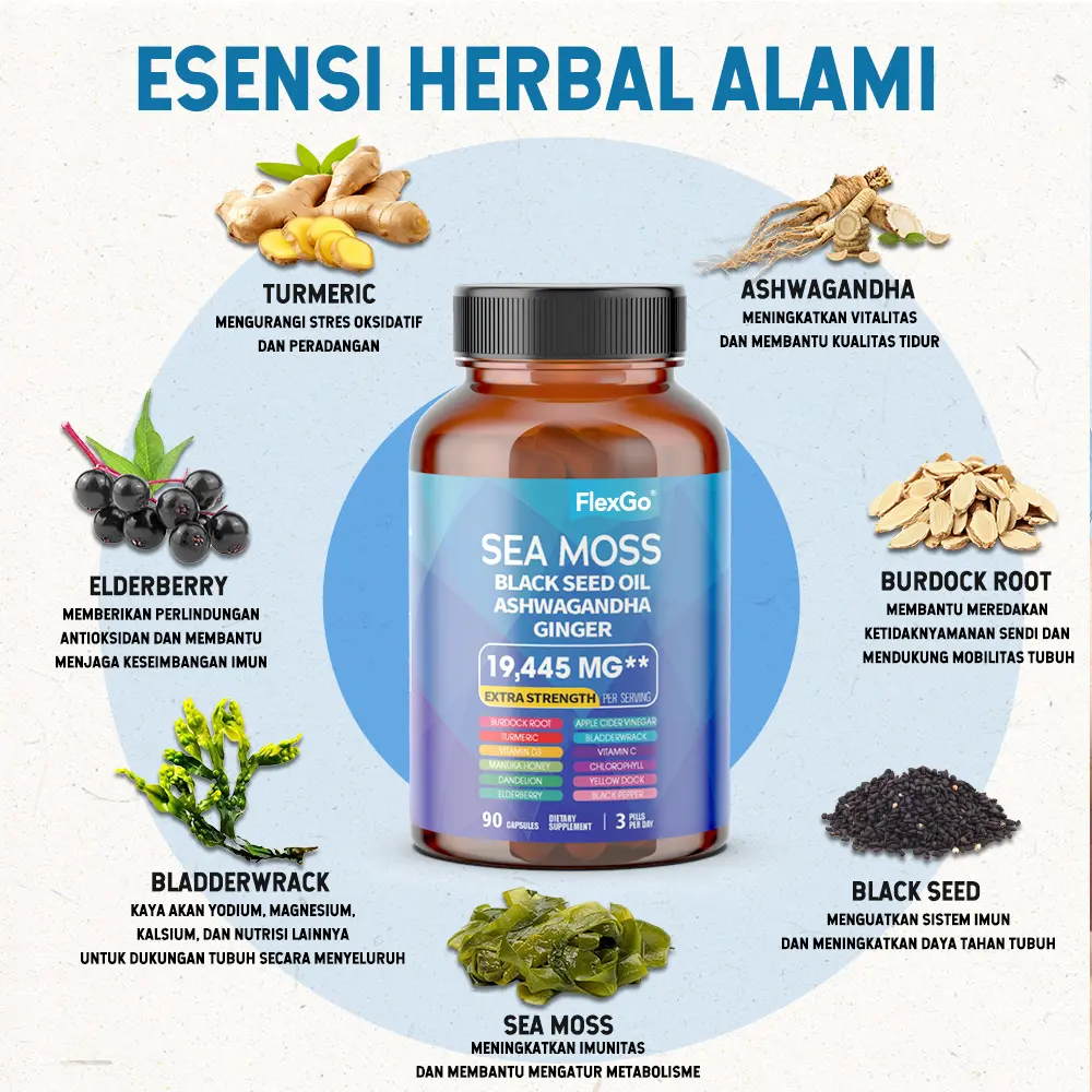 Kapsul FLEXGO menggabungkan Sea Moss, Black Diamond Oil, Ashwagandha, dan Burdock Root untuk membantu meningkatkan energi, performa, kualitas tidur, serta menurunkan kadar kortisol. Sudah bersertifikat FDA & GMP, aman dan berkualitas tinggi.