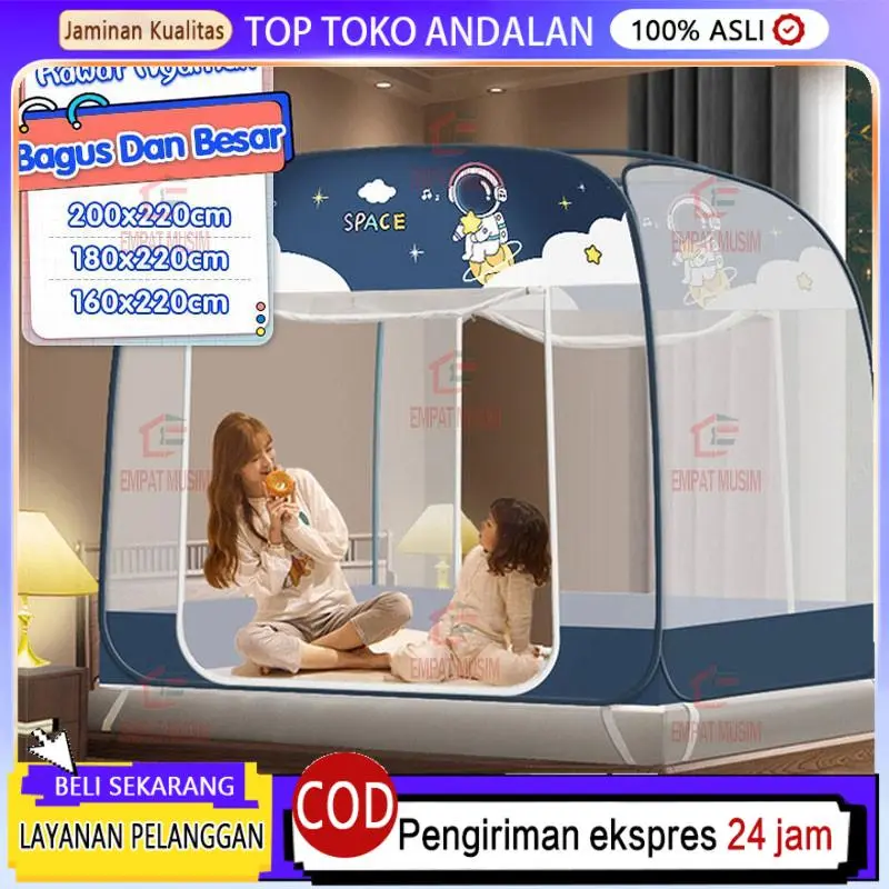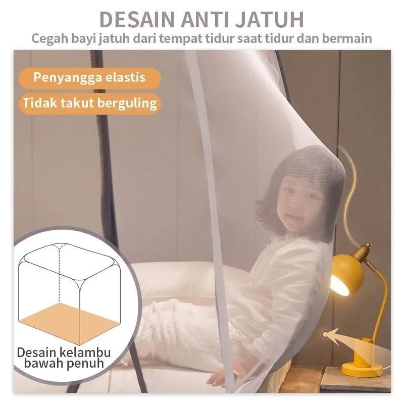 TIDUR SERING DIGANGGU NYAMUK? REPOT PASANG KELAMBU TRADISIONAL? Setiap malam harus berperang dengan nyamuk yang mengganggu tidur Anda dan keluarga? Lelah dengan kelambu model lama yang butuh tali, paku, dan proses pemasangan yang rumit? Dan yang paling penting, khawatir si kecil terjatuh dari tempat tidur saat terlelap?