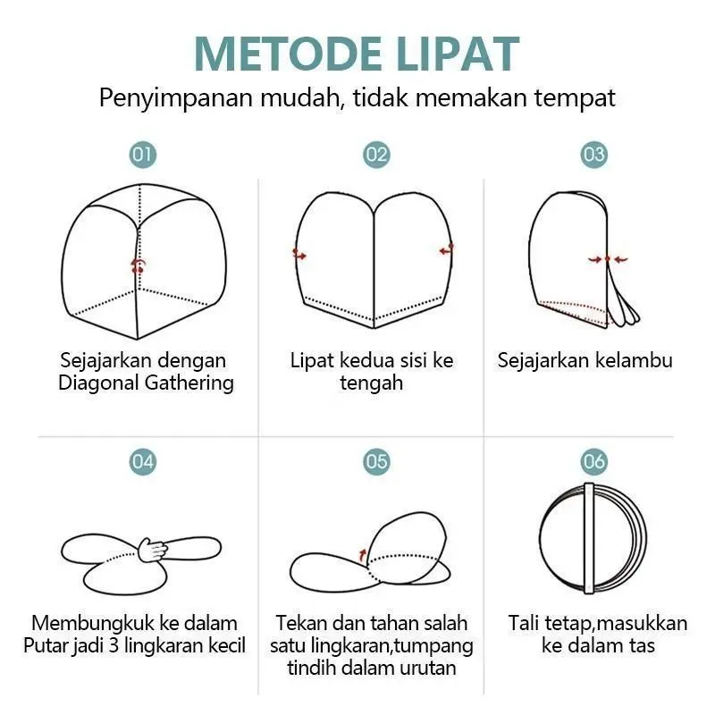 ✅ PRAKTIS DISIMPAN & DIBAWA Saat tidak digunakan, kelambu dapat dilipat kembali menjadi lingkaran kecil yang ringkas. Sangat mudah disimpan di lemari atau dibawa untuk bepergian.