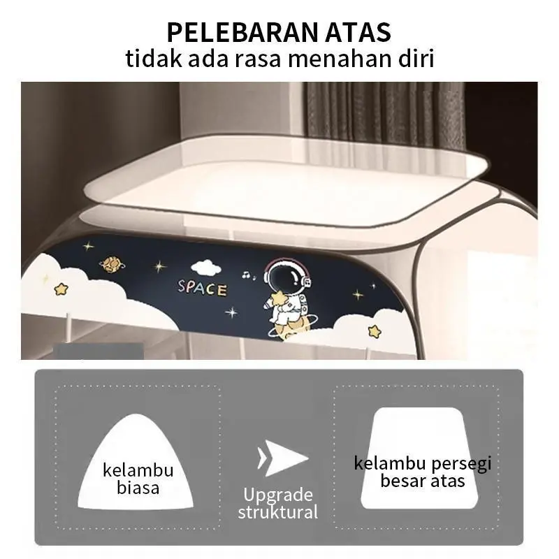 ✅ PERLINDUNGAN TOTAL 360 DERAJAT Desainnya yang menyerupai tenda memberikan perlindungan menyeluruh dari semua sisi, termasuk bagian bawah (untuk varian dengan alas). Nyamuk, lalat, semut, hingga kecoa tidak akan bisa masuk. Tidur jadi jauh lebih tenang.
