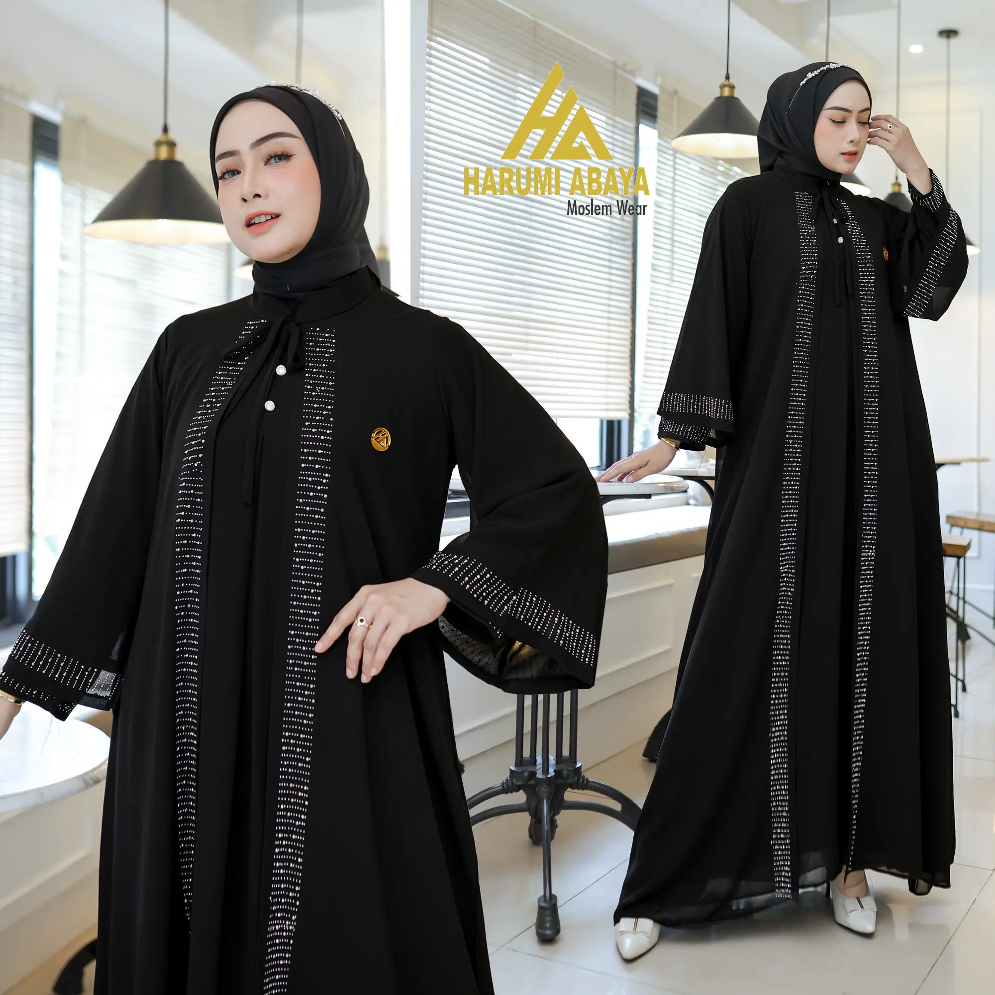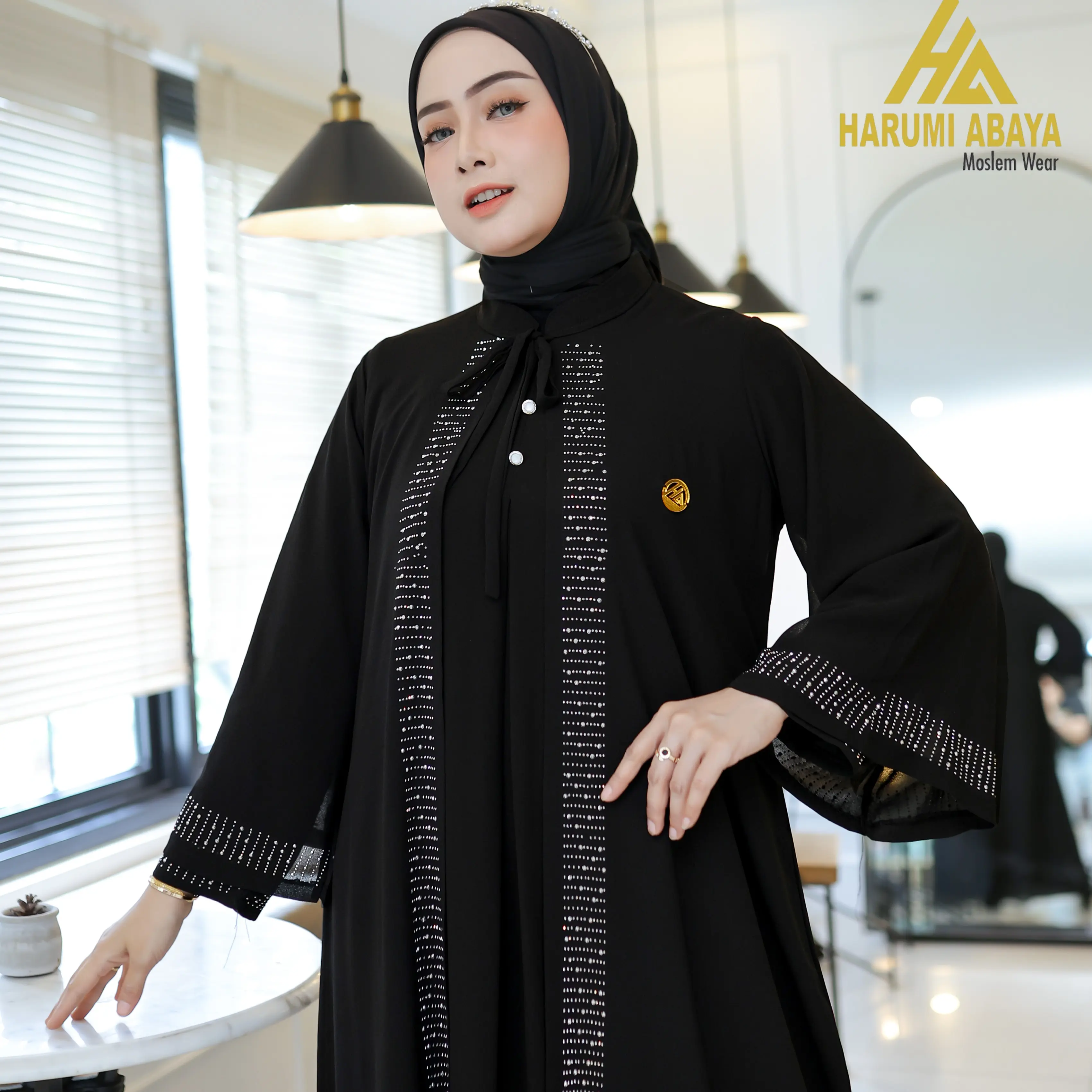 Harumi Abaya Gamis Ceruty Premium dengan Hiasan Swarosky Desain Elegan Bahan Nyaman untuk Wanita Ukuran XL XXL