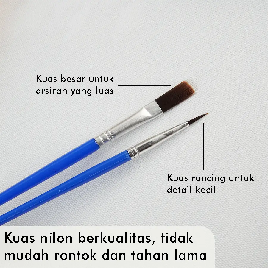 ·Kuas Lukis (Beberapa Ukuran): Kuas dengan berbagai ukuran (halus, sedang, tebal) untuk membantu Anda menjangkau area detail maupun luas.