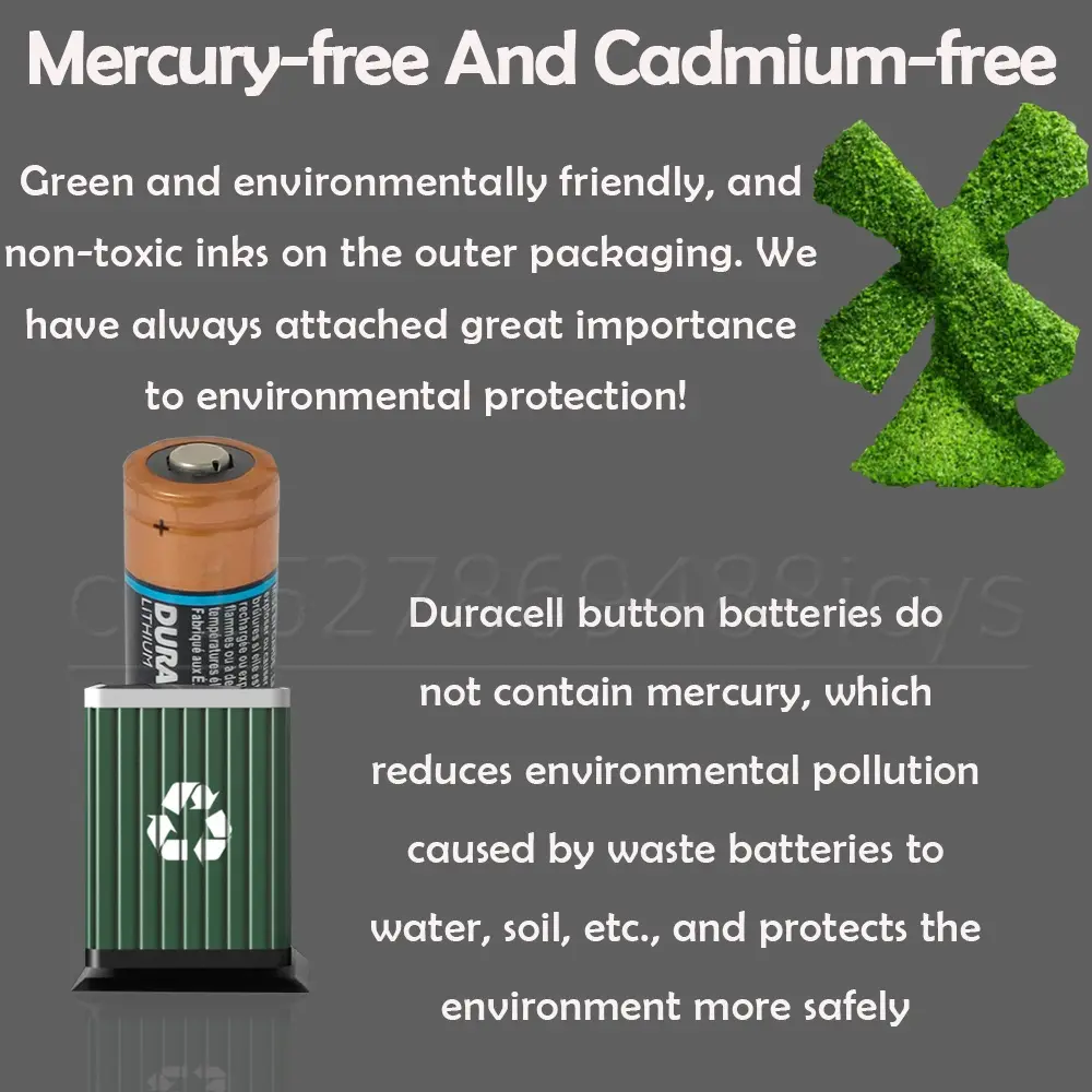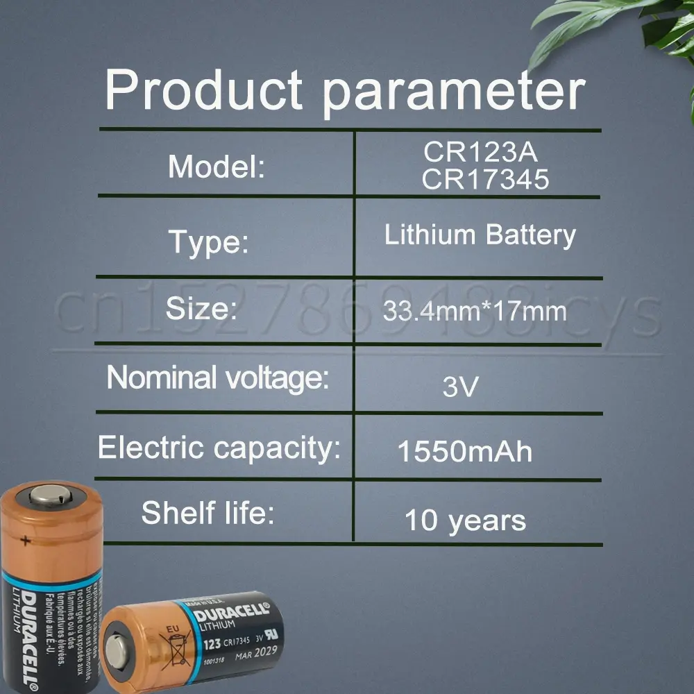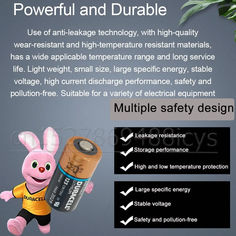 ✨ Baterai Lithium Duracell CR123A 3V adalah baterai primer kering dengan kapasitas nominal 1550mAh. Merek Duracell asal AS dengan sertifikasi CE. Baterai ini tidak dapat diisi ulang dan ukurannya 33,4mm x 17mm. Nomor modelnya adalah CR123A CR17345. Kondisi baterai 100% baru.