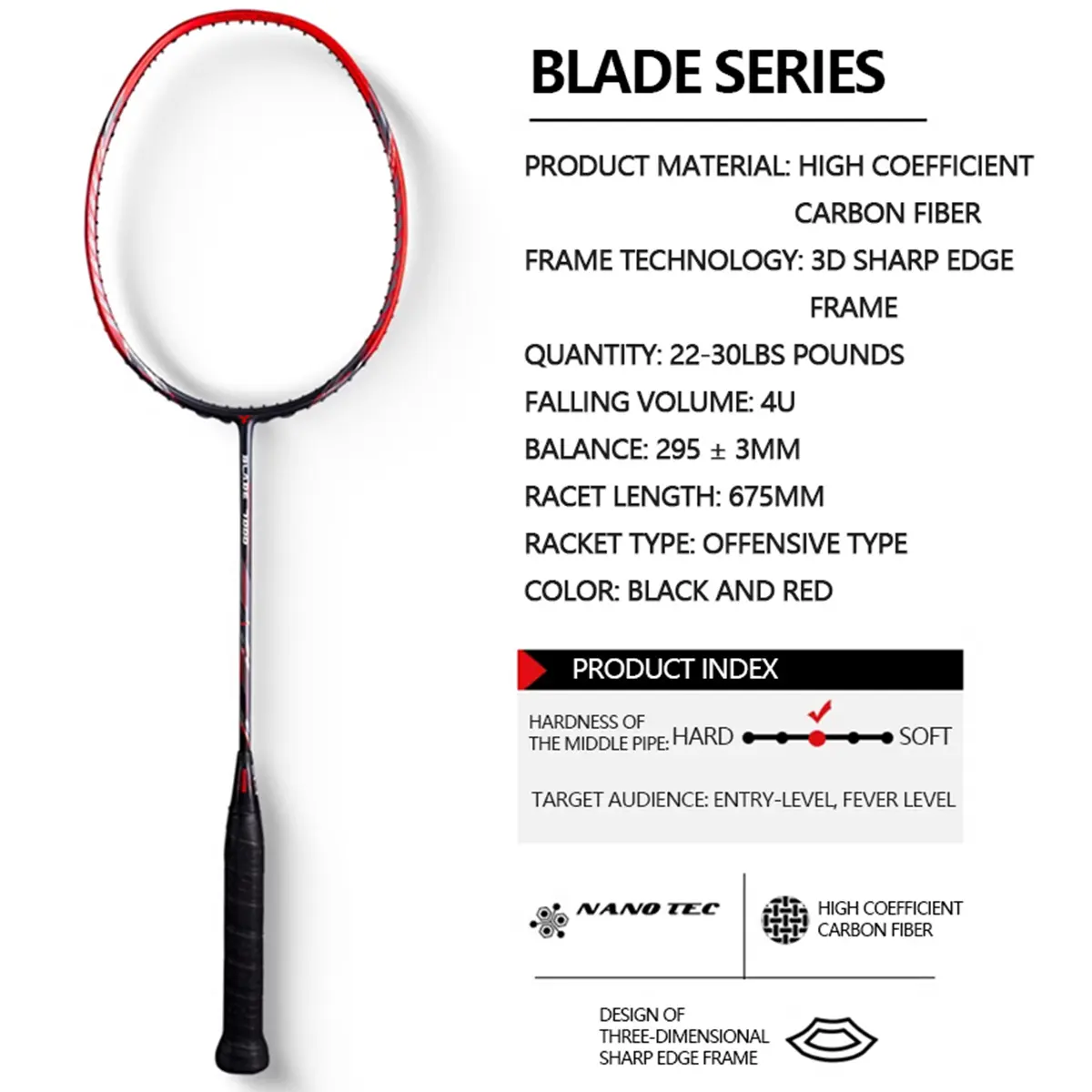 ORBITAL BLADE RAKET BADMINTON FULL CARBON MAX:35LBS 4U (82±2g) Tipe Menyerang Balance 295±3MM