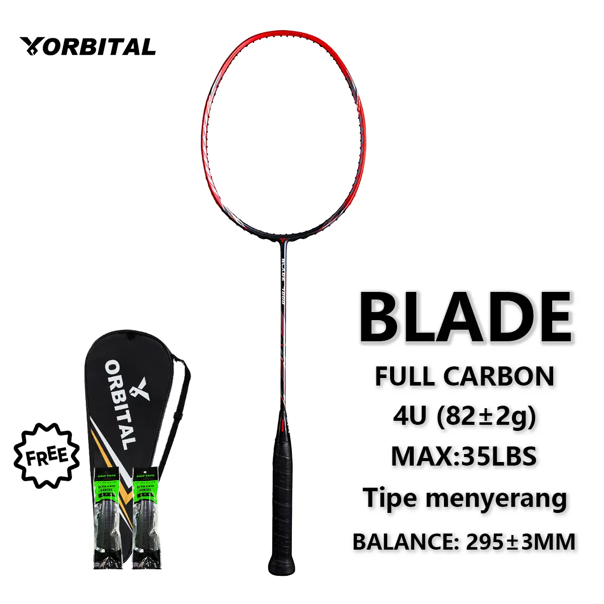 ORBITAL BLADE RAKET BADMINTON FULL CARBON MAX:35LBS 4U (82±2g) Tipe Menyerang Balance 295±3MM
