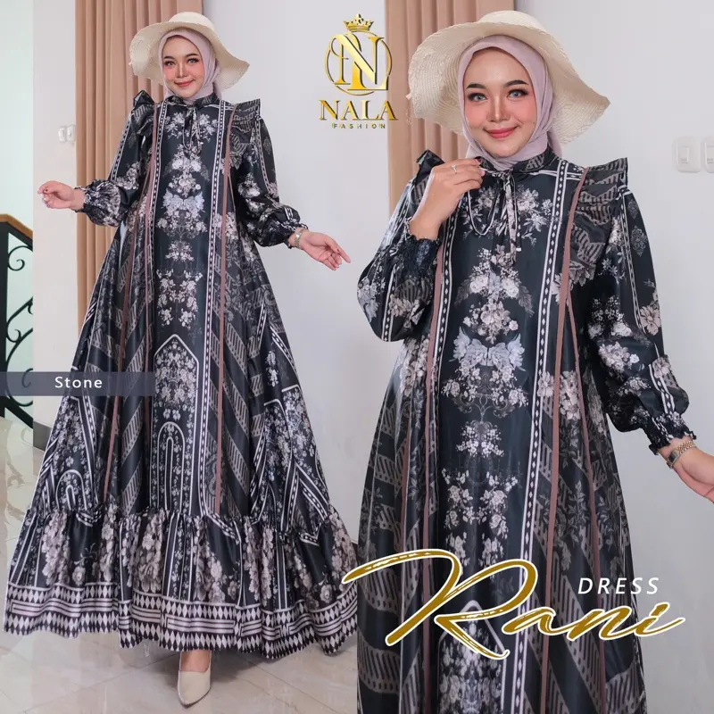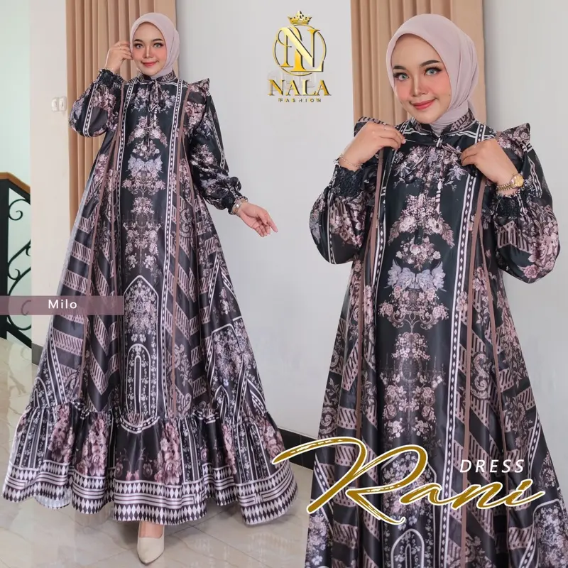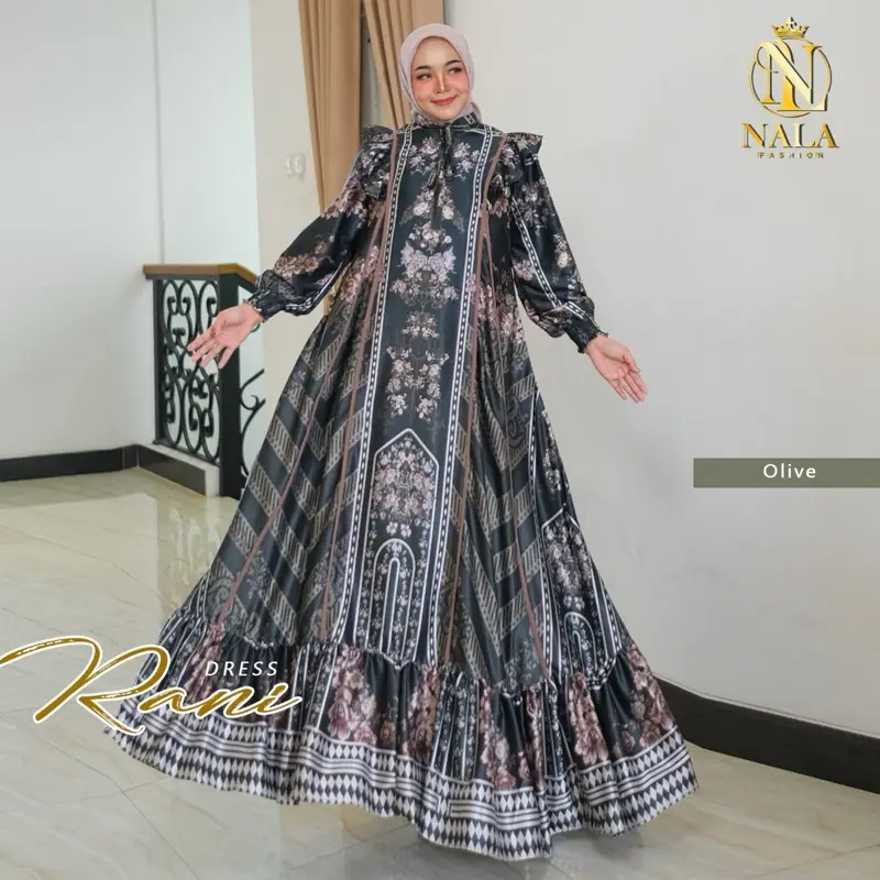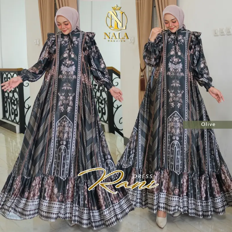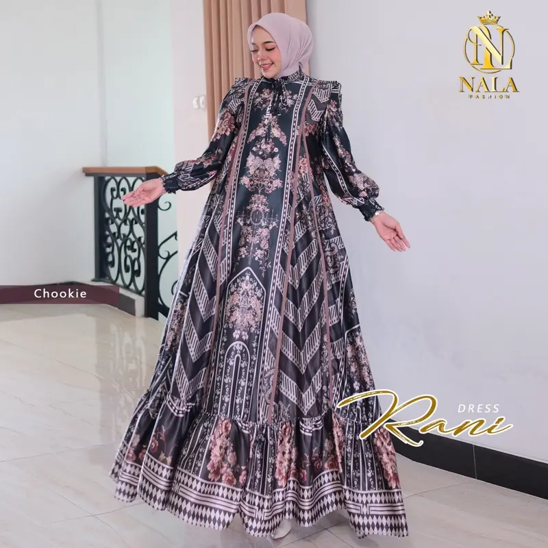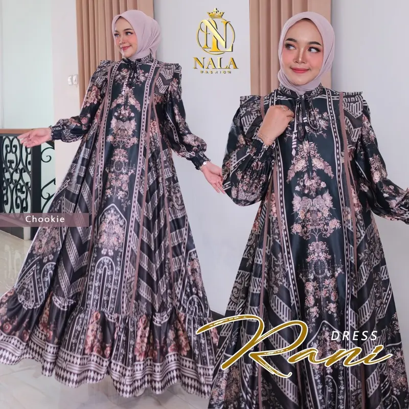 ·Rani Maxy Dress terbuat dari bahan silk premium import. Desainnya mewah, cocok untuk Lebaran dan acara formal. 🌟