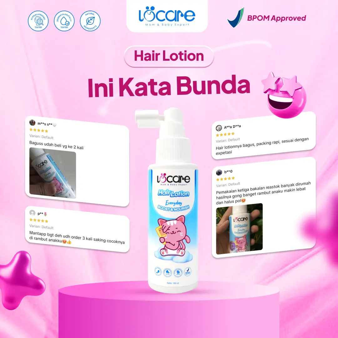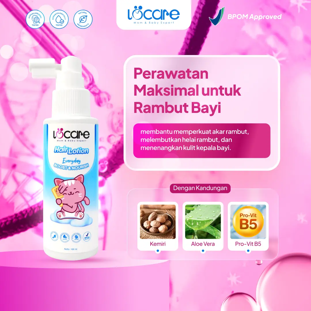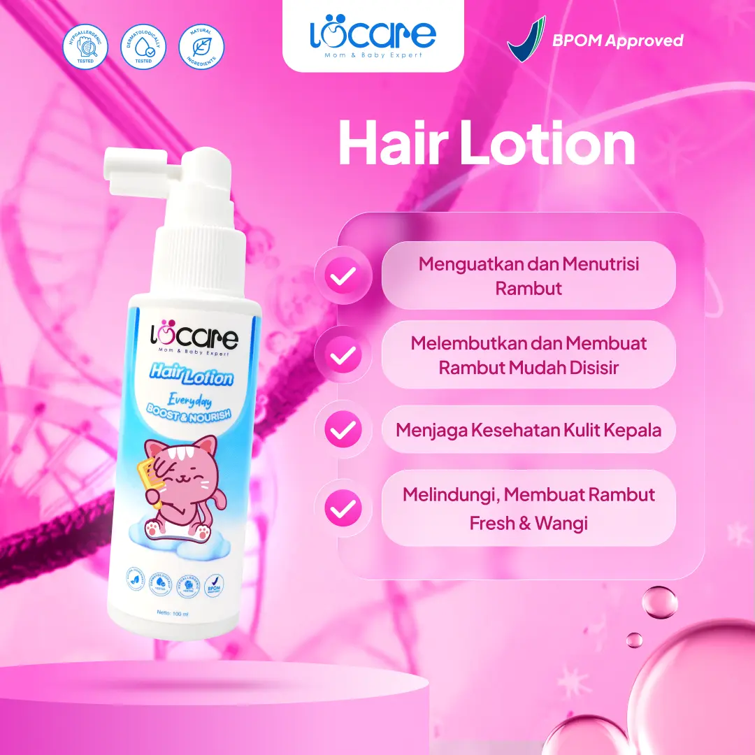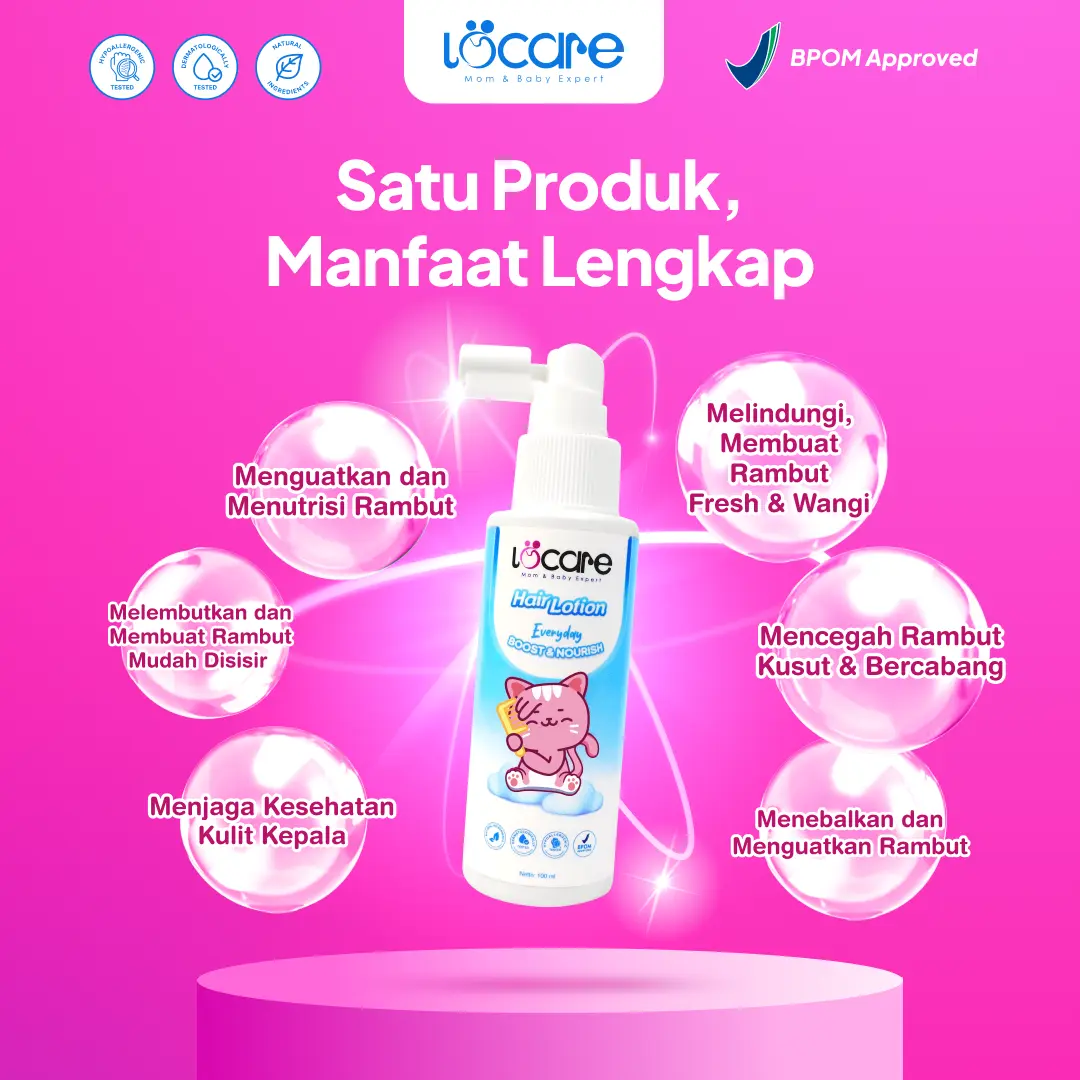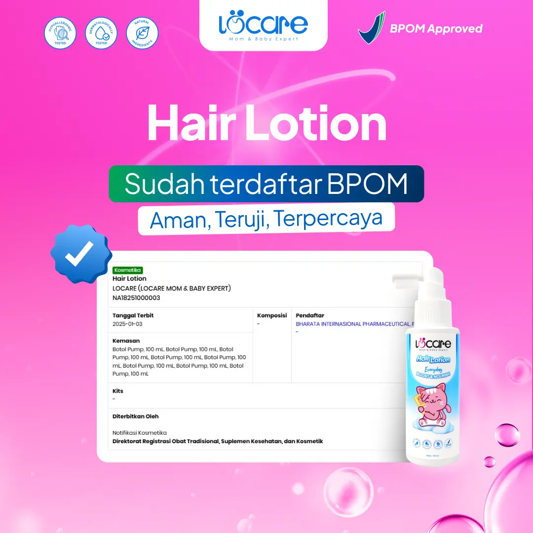 LOCARE Hair Lotion Bayi & Anak 100ml – Perawatan rambut aman & alami untuk si kecil, dengan 7 Extra Nutrient Formula yang membantu menutrisi, melembutkan, dan menjaga kesehatan rambut bayi & anak setiap hari.