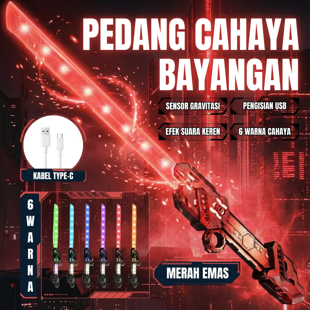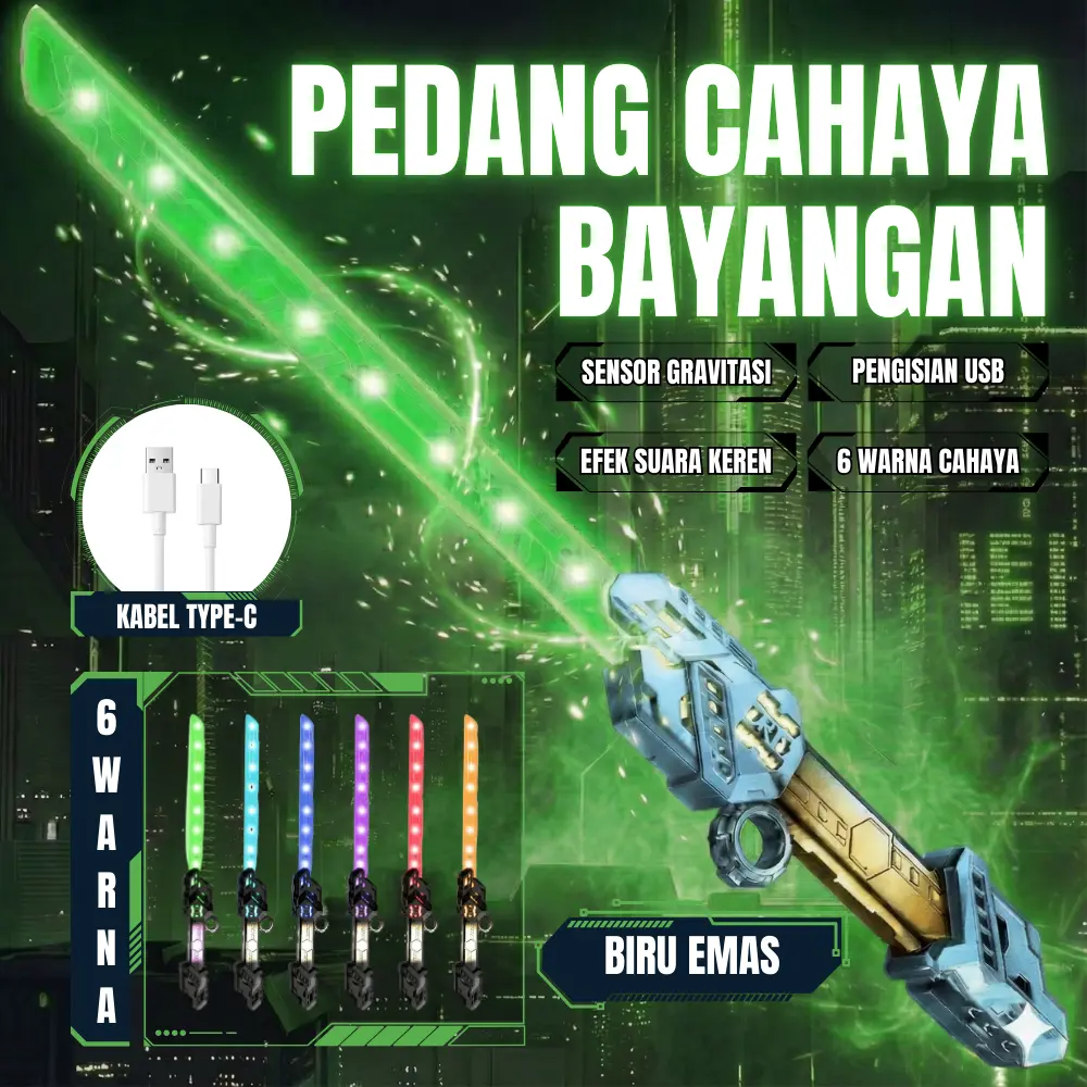 ·Fitur: double blade, teleskopik, efek suara, lampu LED.