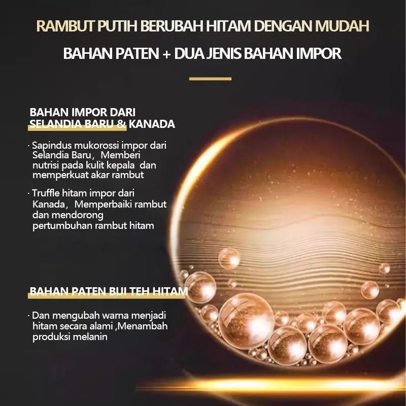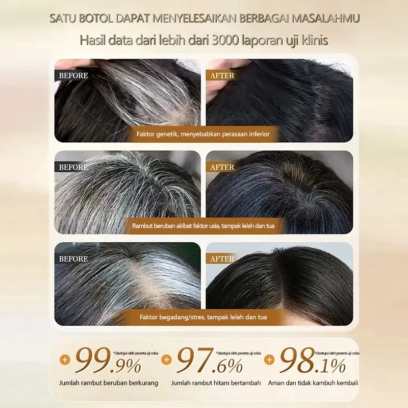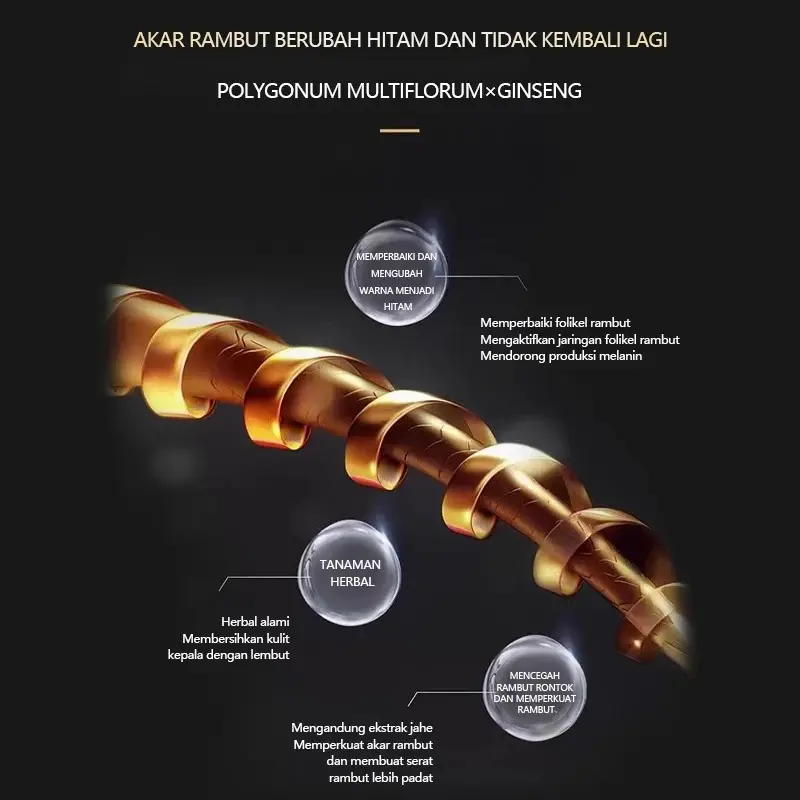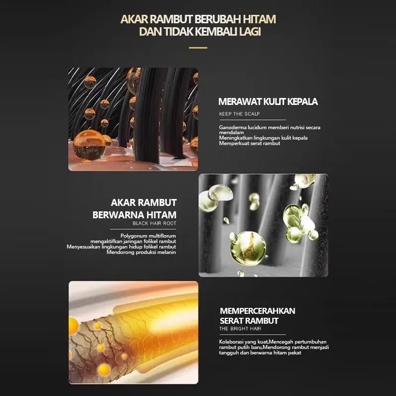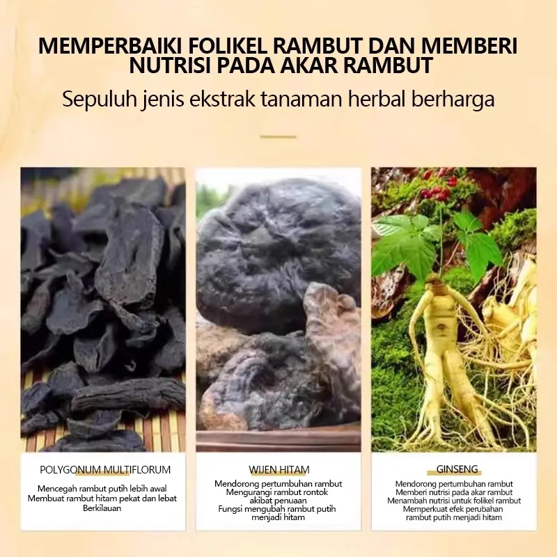 * Bahan: Ginseng, Polygonum multiflorum, Ganoderma Lucidum, Saponin dll