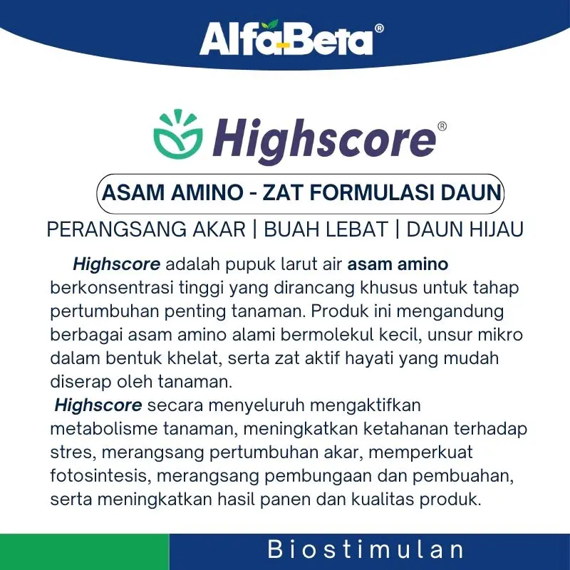 Highscore Pupuk Cair Asam Amino adalah produk unggulan yang dikembangkan oleh Alfabeta Company. Dirancang khusus untuk merangsang pertumbuhan akar, pembesaran buah, dan daun hijau pada tanaman. Produk kami kaya akan berbagai asam amino dan elemen mikro yang dibutuhkan oleh tanaman, cocok untuk berbagai jenis tanaman, dapat secara efektif meningkatkan hasil panen, memperbaiki kualitas buah, dan merupakan pilihan ideal untuk budidaya buah dan sayuran.
