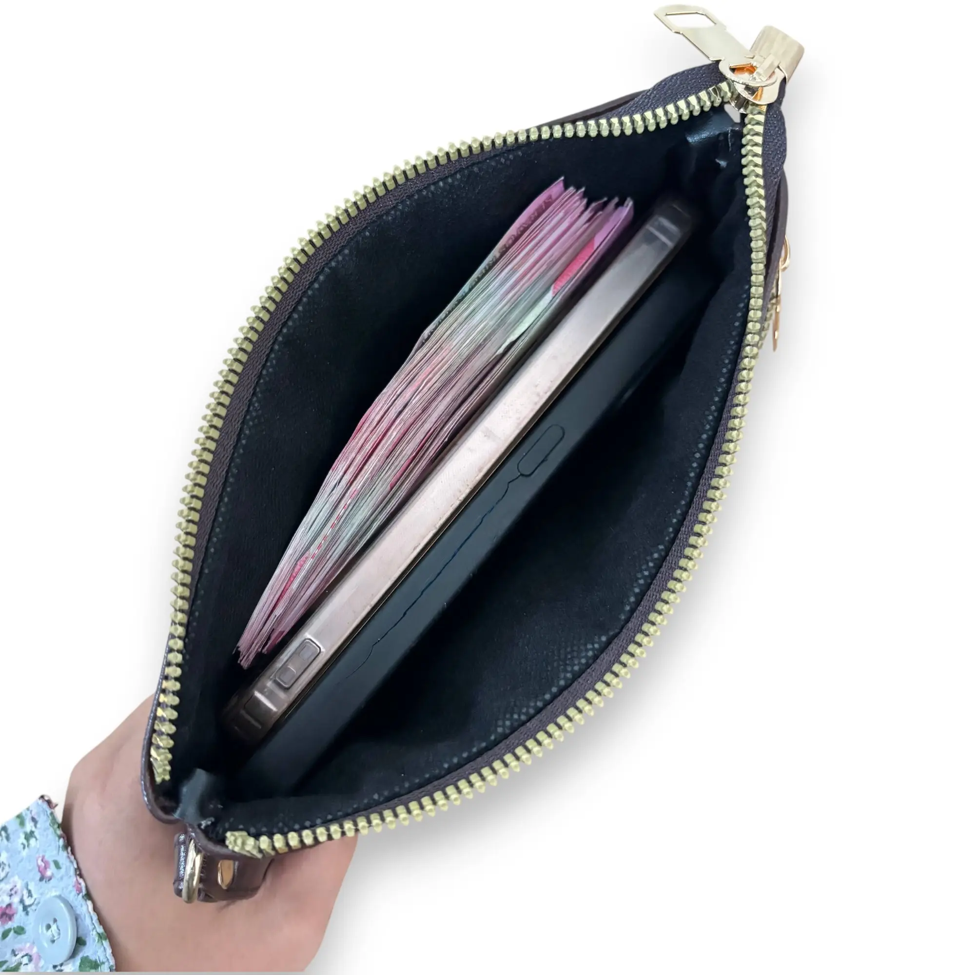 Kapasitas: Cukup besar untuk dompet ukuran kecil dan HP