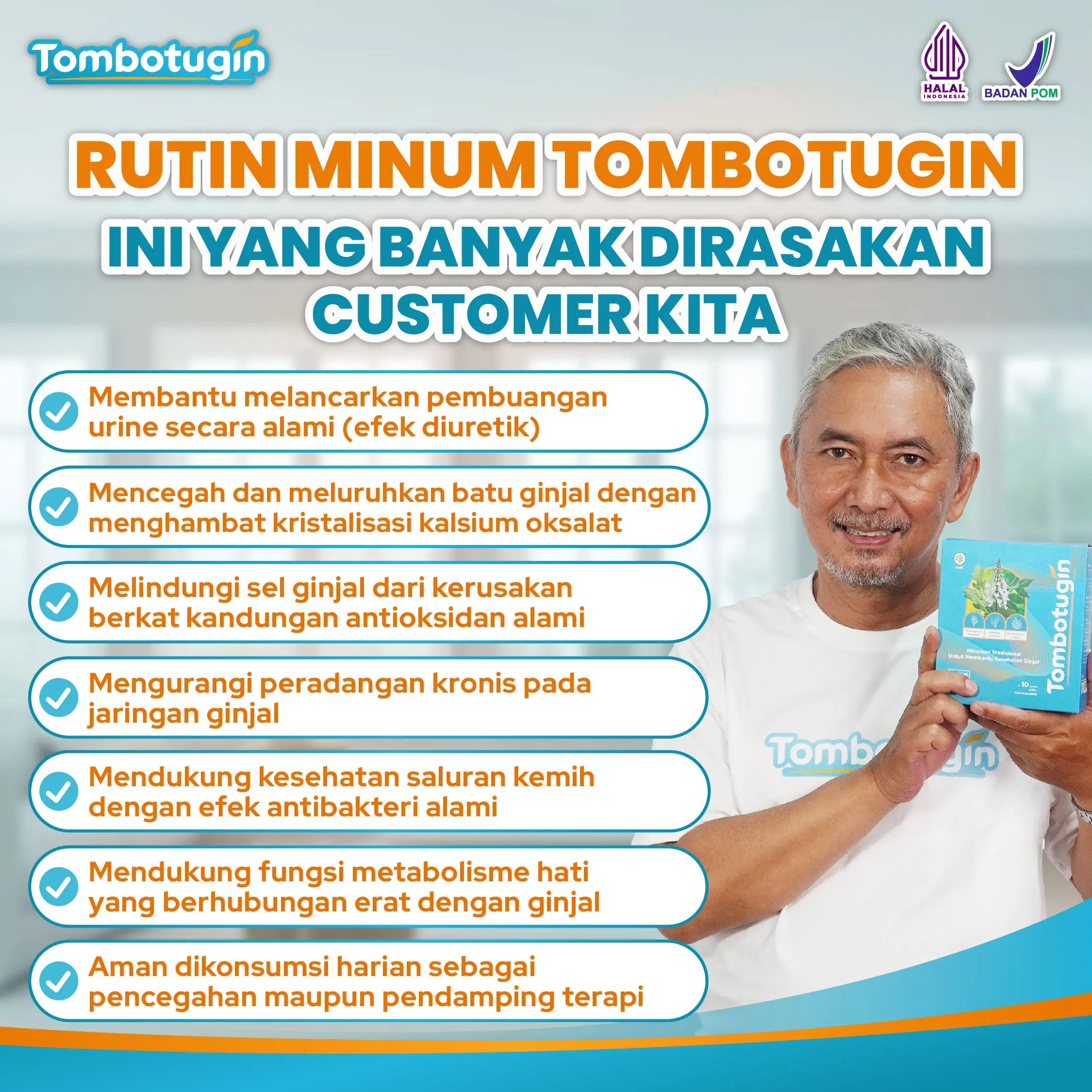 Sering merasa cepat lelah, pinggang sering nyut-nyutan, atau buang air kecil tidak lancar? Itu bisa jadi tanda ginjal mulai bekerja lebih berat dari biasanya. Masalah ginjal sering tidak disadari di awal, padahal kalau dibiarkan bisa berkembang menjadi gangguan serius. Tombotugin hadir sebagai solusi alami untuk membantu menjaga kesehatan ginjal Anda sehari-hari.