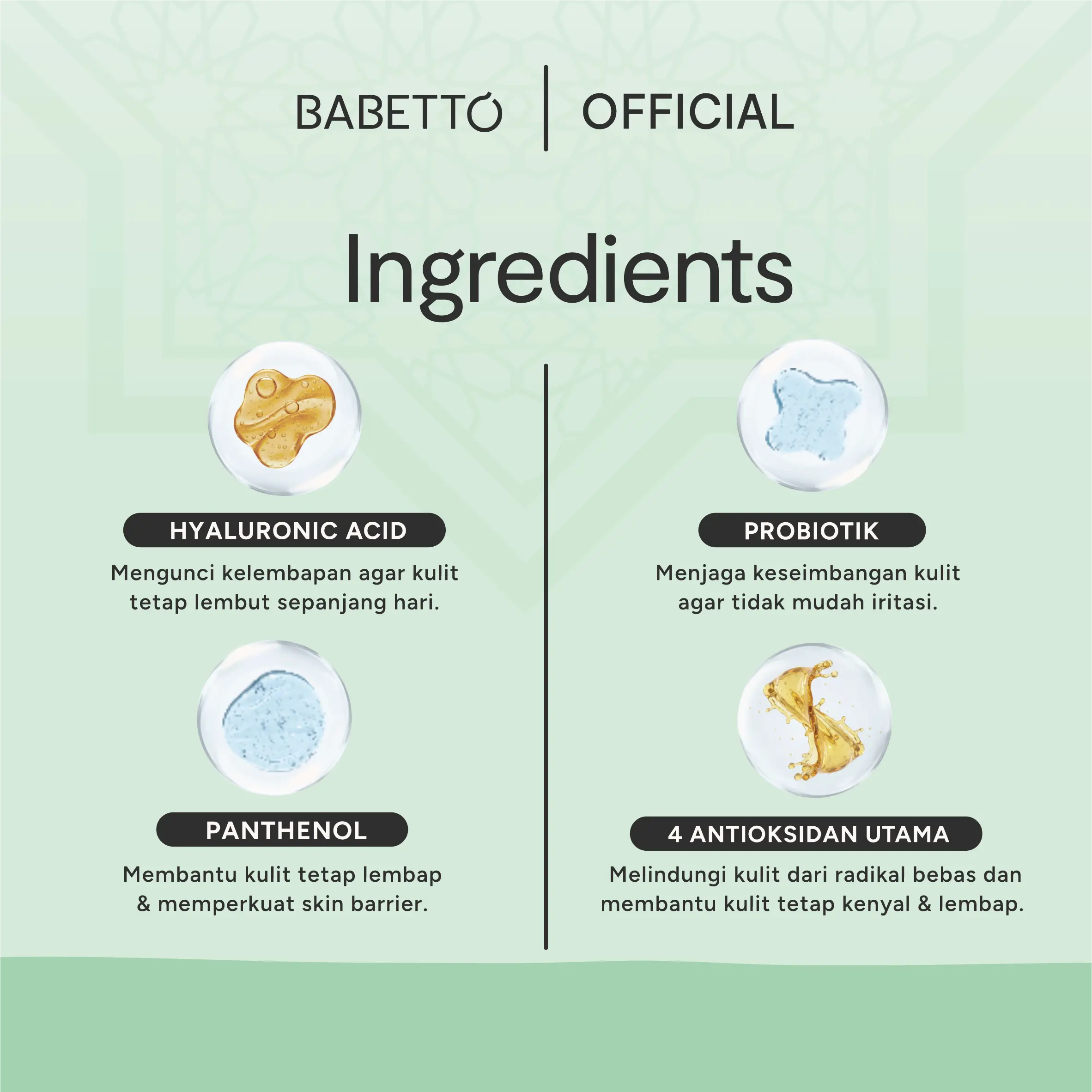 ·Perawatan Lembut Selama Kehamilan : Diformulasikan dengan bahan-bahan aman untuk kehamilan dan melembapkan secara mendalam, Babetto membantu menjaga kenyamanan dan elastisitas kulit selama kehamilan saat kulit meregang dan berubah.