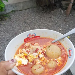Rasa hambar, Terlalu pedas nampol, stl saya tambahkan sedikit garam, gula, kakdu jamur, kecap manis, asin baru rasanya lumayan enak , tap stl kmren saya makan bakso aci yg pedas nampol ini , td pas k toilet maaf dri usus besar keluar darah , mungkin krn bumbunya terlalu pedas nampol,
