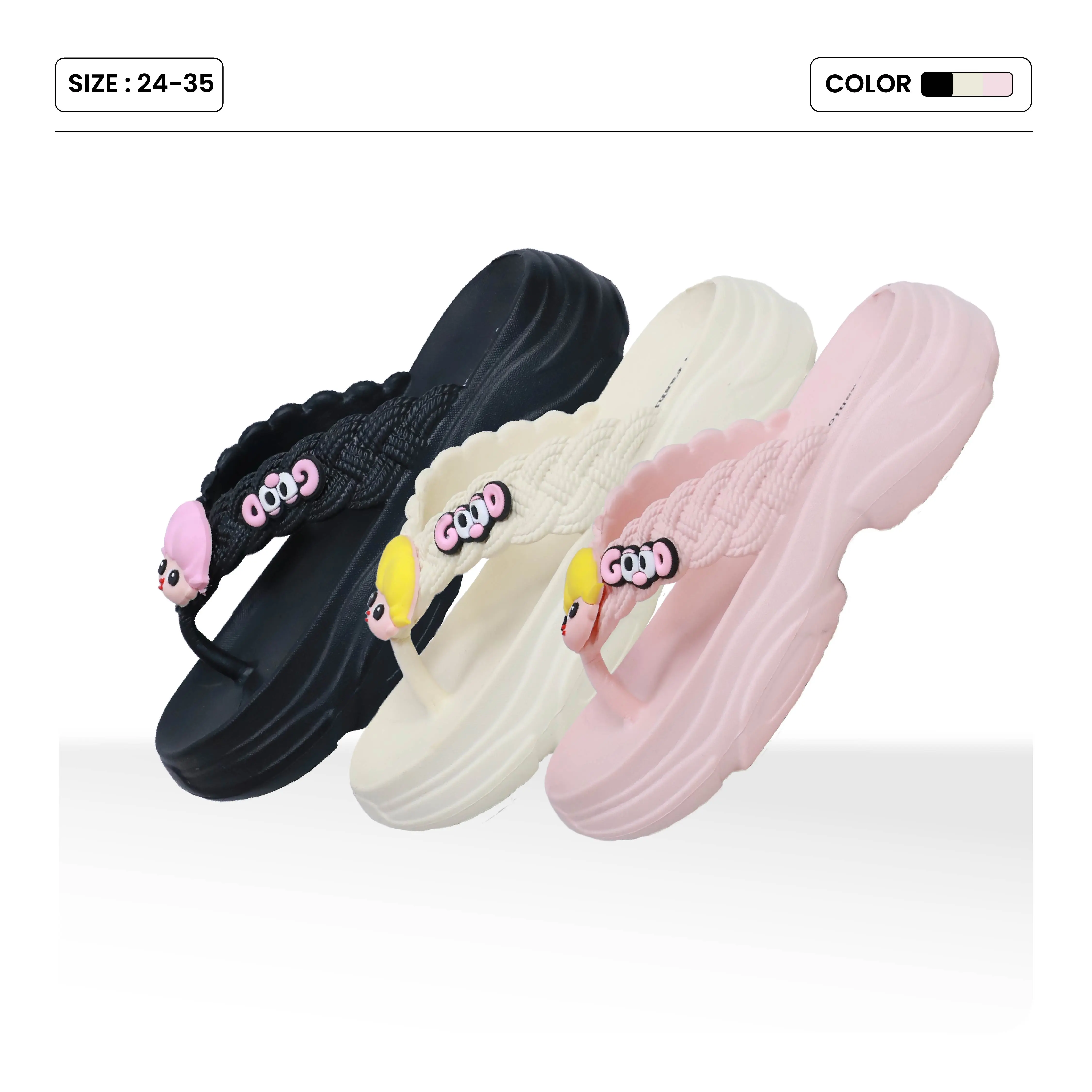 Sandal Slipper Slip-On dengan alas kaki tebal anti licin. Sangat lembut ketika digunakan, dan tidak membuat kaki sakit saat berjalan jauh. Design aesthetic, simple tetapi elegant, bahan fleksible sehingga tidak mudah berubah bentuk. Nyaman dan cocok untuk digunakan dirumah atau saat bepergian.