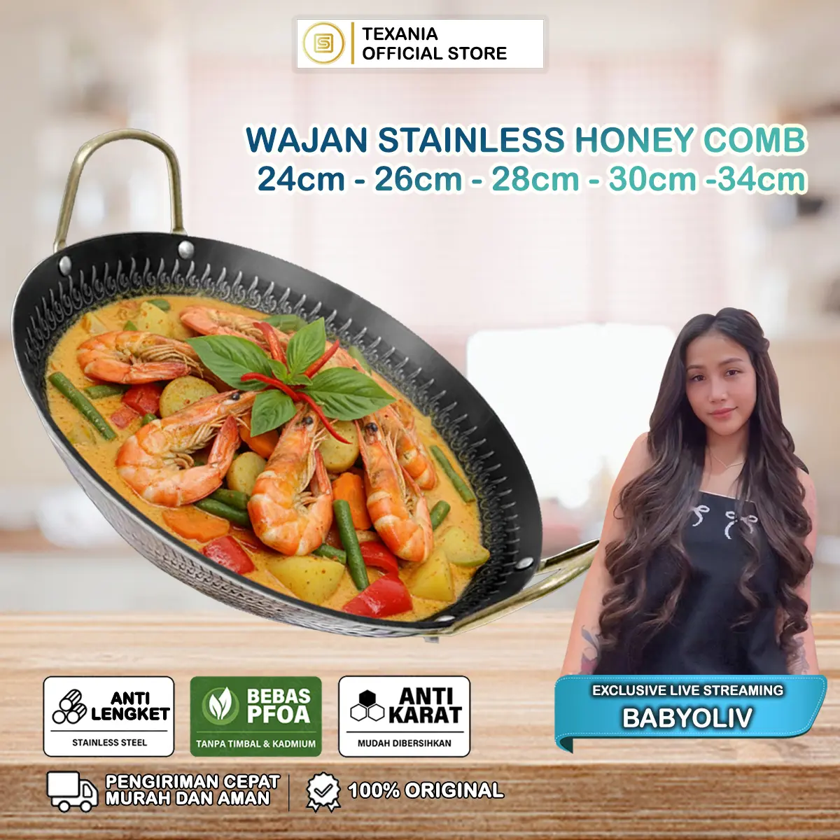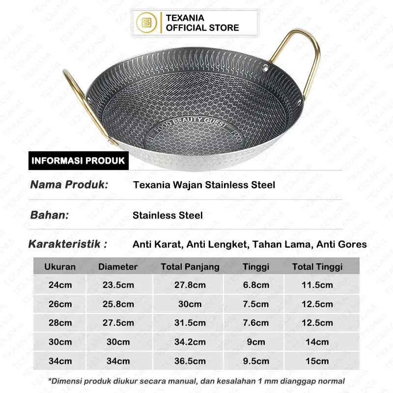 ✨ Wajan Stainless Steel Honey Comb adalah pilihan tepat untuk kebutuhan dapur Anda. Dengan desain anti lengket dan anti karat, wajan ini tahan lama. Tersedia dalam ukuran 24cm, 26cm, 28cm, 30cm, dan 34cm. Cocok untuk berbagai keperluan memasak.