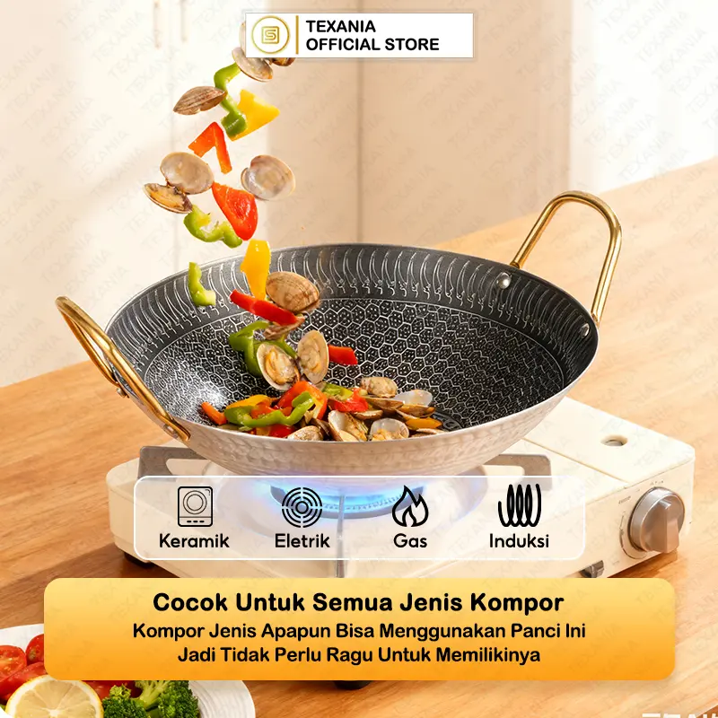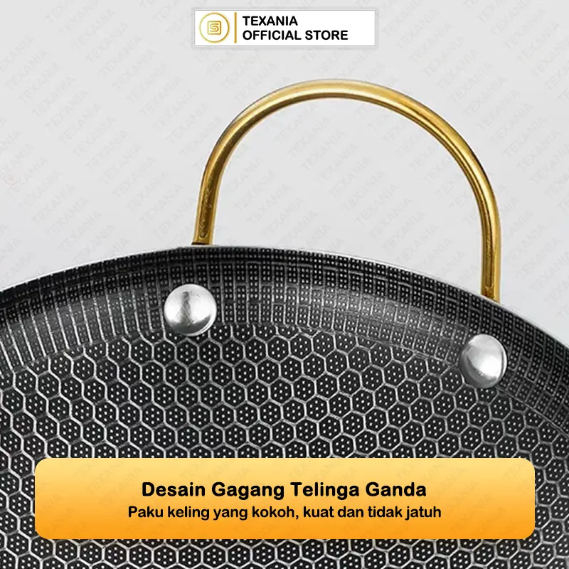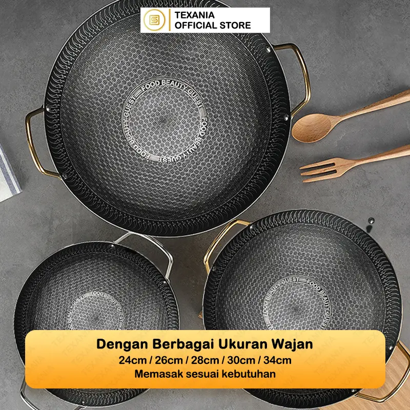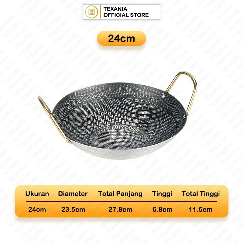 Wajan ini menawarkan keawetan yang tinggi. Dengan desain anti lengket, makanan tidak mudah menempel. Cocok untuk digunakan dalam berbagai masakan. Pilih ukuran yang sesuai dengan kebutuhan Anda.