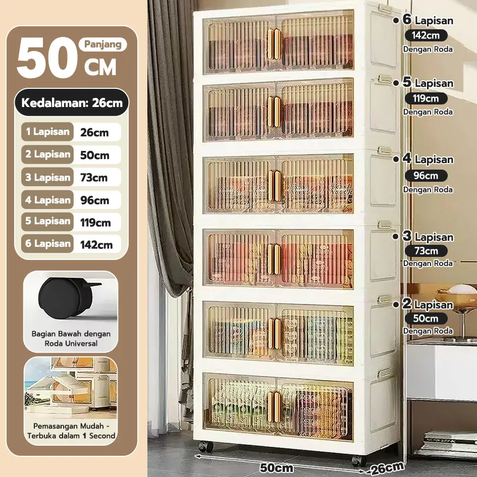 5. 【Promo Buka Toko】Starke 50-60cm Lemari Plastik Susun Besar Lipat Penyimpanan Serbaguna Furniture 3/4/5/6 Susun Aesthetic Desain Ramping Tahan Lama