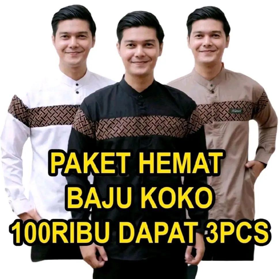 Jangan lewatkan tawaran ini! Dapatkan 3 pcs baju koko motif kurta kobata panjang dengan hanya 100 ribu.
