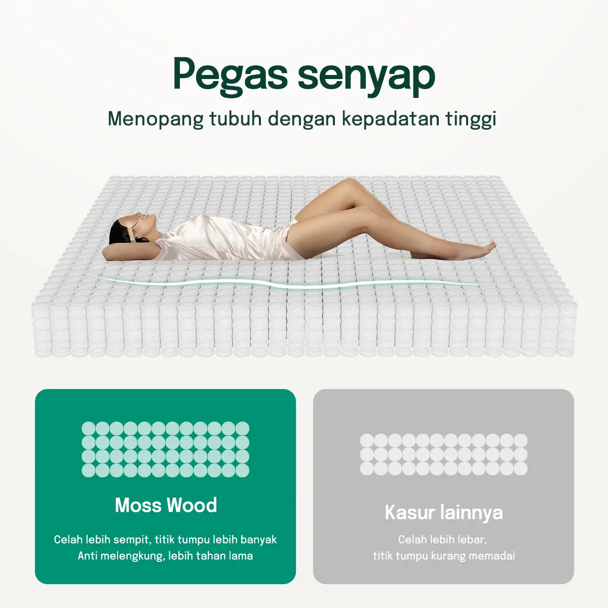 MossWood Kasur Springbed Hotel Premium Anti Goyang Tahan Lama 20cm High Density Anti Air Bonus Bantal Gratis COD