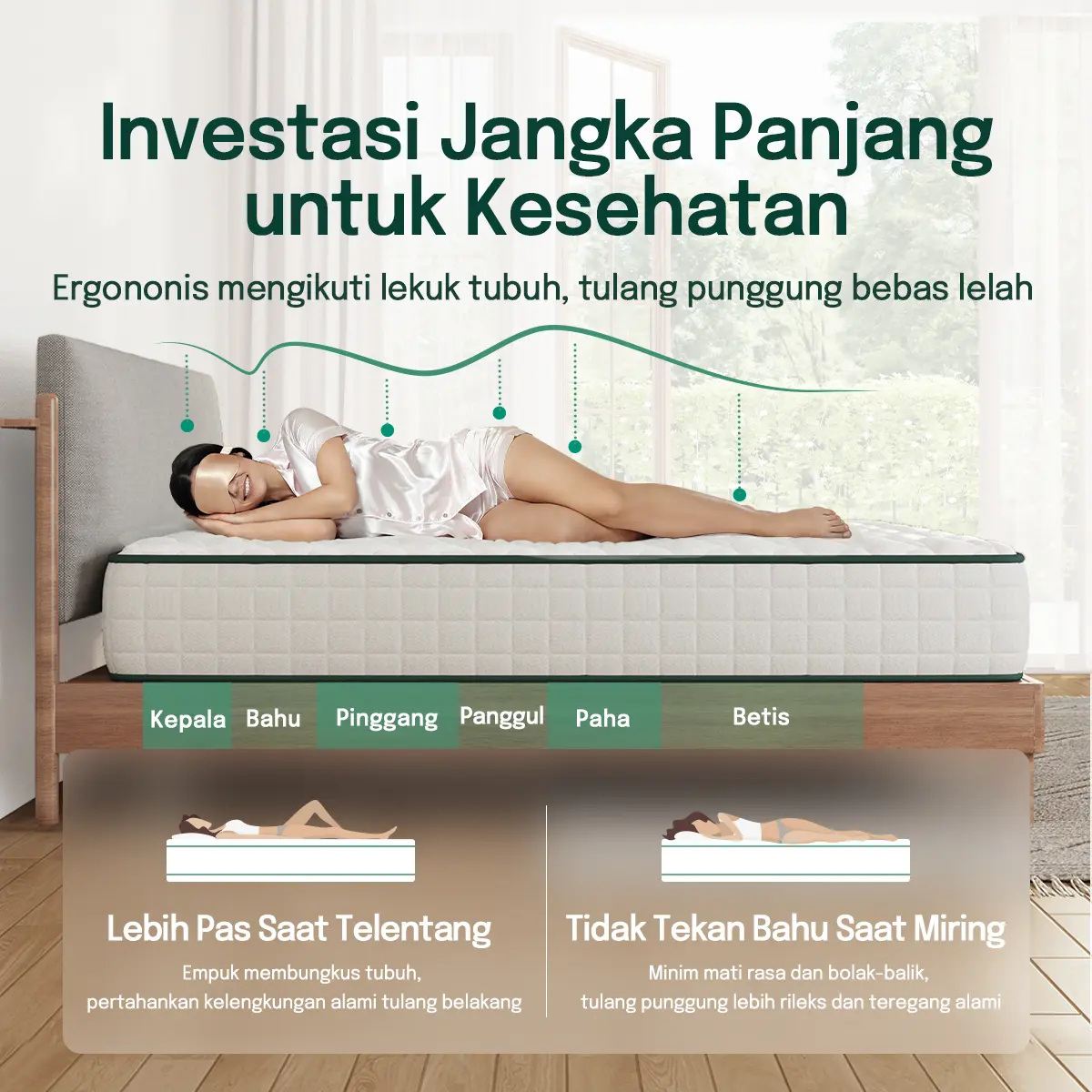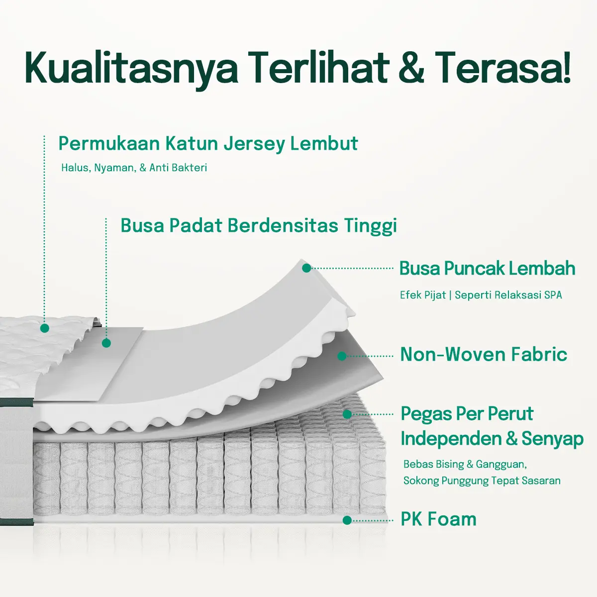 Kasur ini memiliki tingkat kekerasan medium, cocok untuk semua kalangan. Dengan kemasan vacuum dari kertas kraft 100% biodegradable, hemat karbon. Bahan high-density anti air/sobek, perlindungan sudut +80%, anti lembek dan penyok. Kiriman lebih aman & eco-friendly!