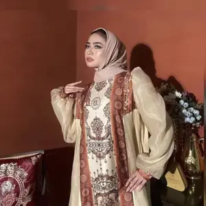 Adisyaaaa Dress gold dan navy Gamis Only Material Lady Zr Organza Patten Ea Exlusive By Elly Arsy