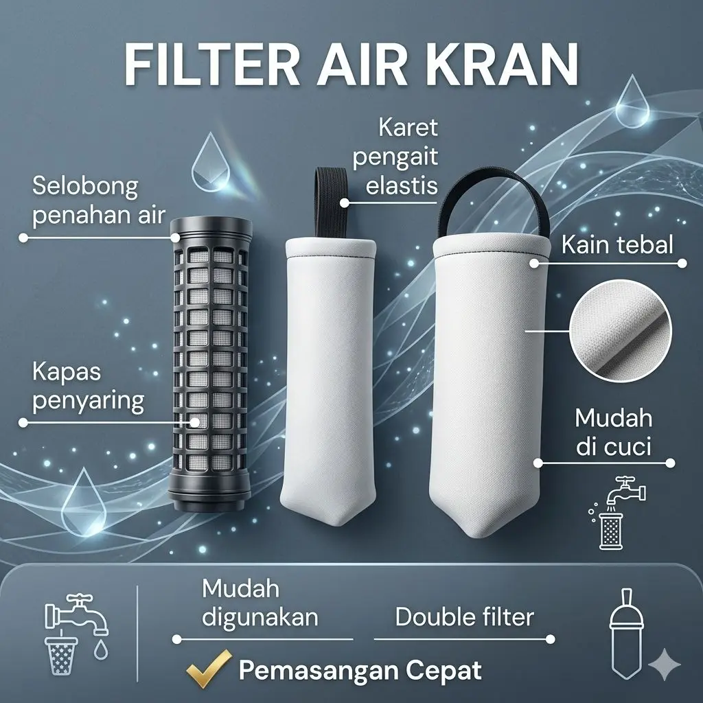 Filter Air Keran Saringan Penjernih Air Kain Tebal Selobong Penahan Air cocok untuk air PDAM dan sumur Simple Mudah Dicuci Awet Tahan Lama Cocok Semua Keran