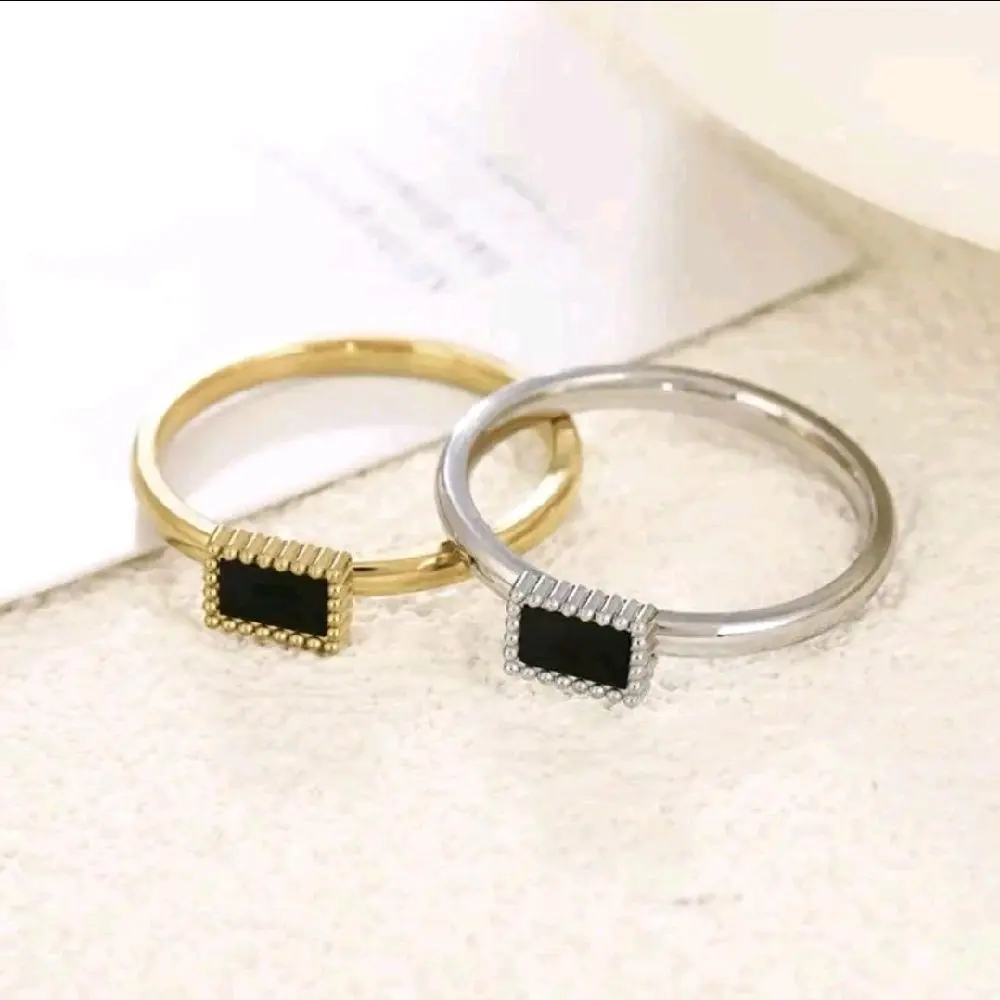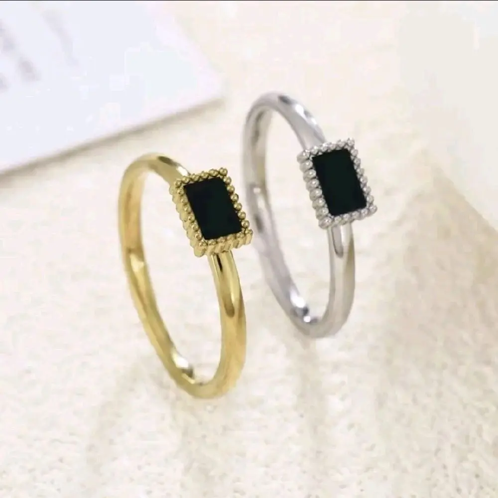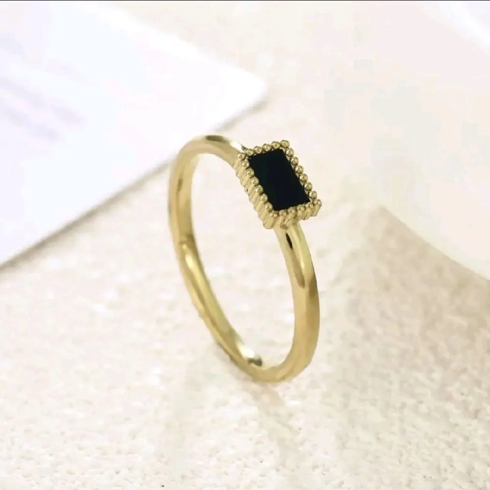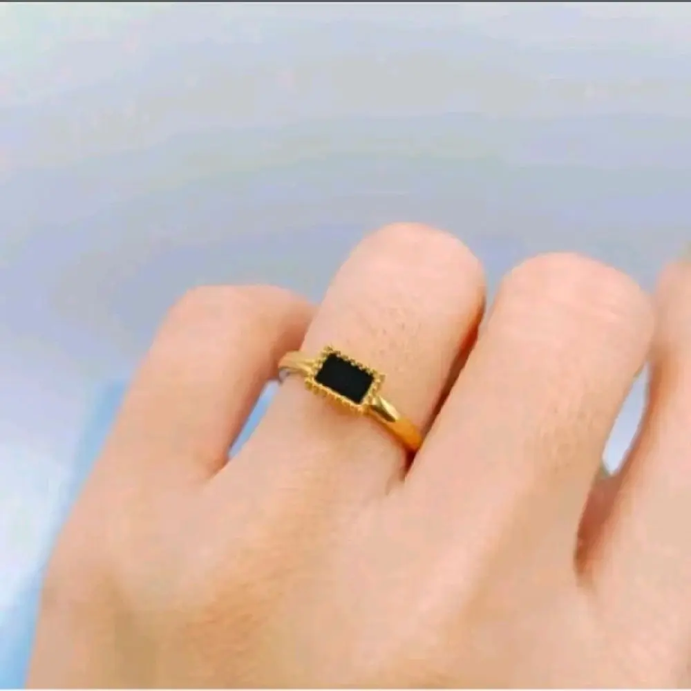 ✨ Cincin Titanium Kotak Permata Hitam Elegan Gold 24k dengan Desain Mewah ✨