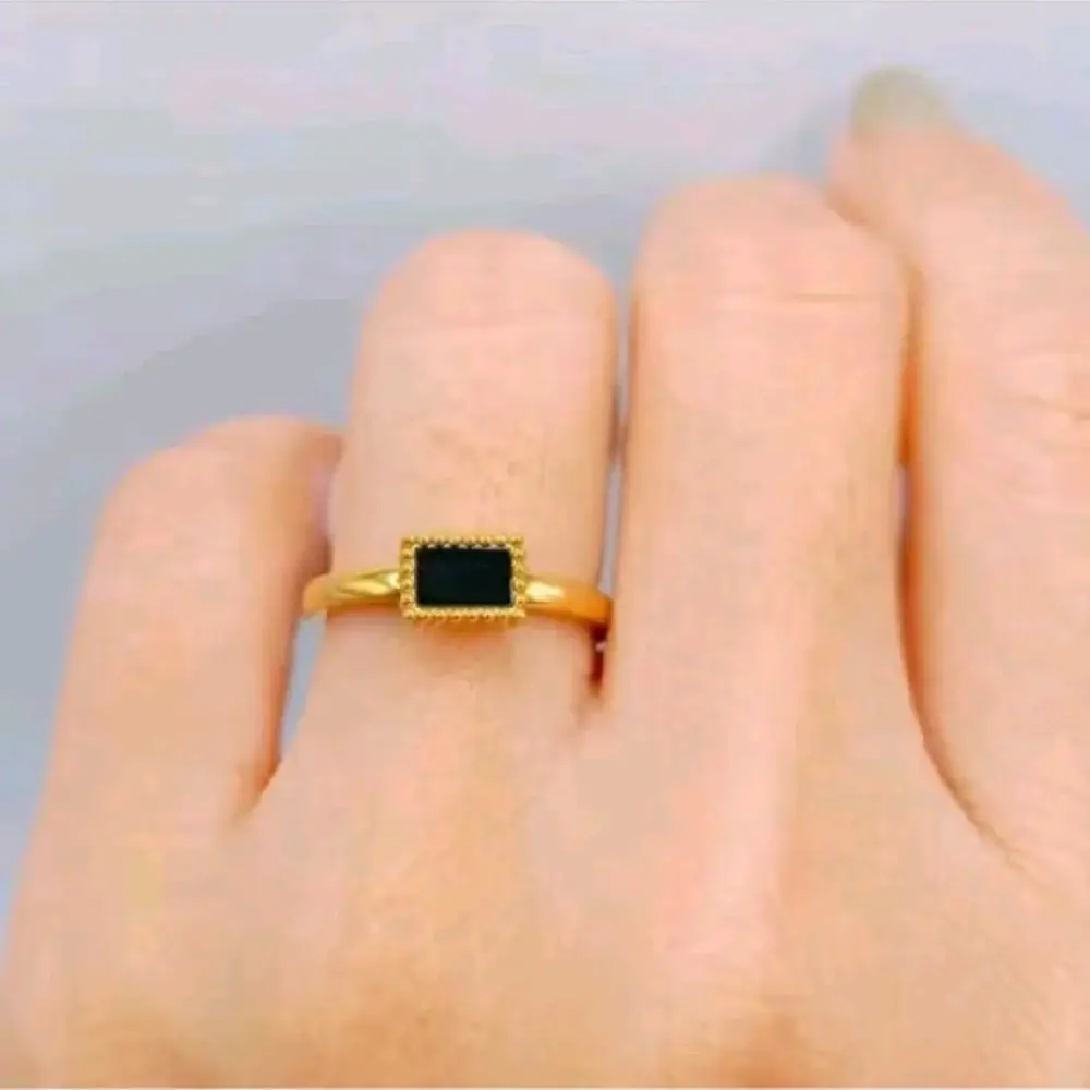 5. Cincin Titanium Kotak Permata Hitam Elegan Gold 24k dengan Desain Mewah