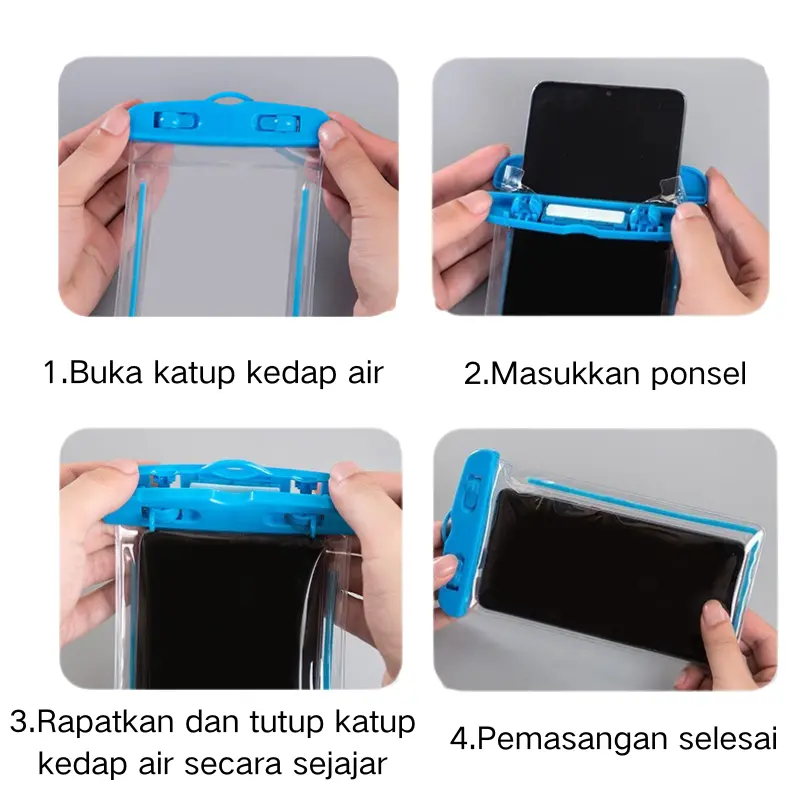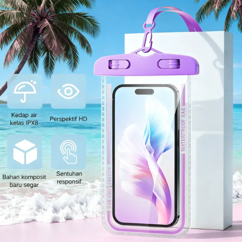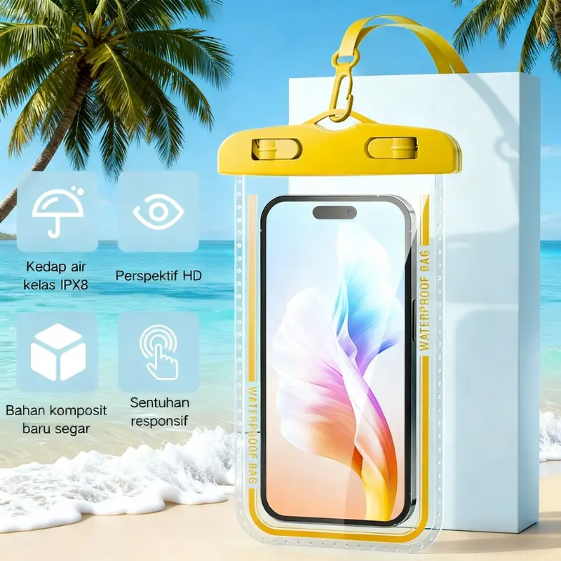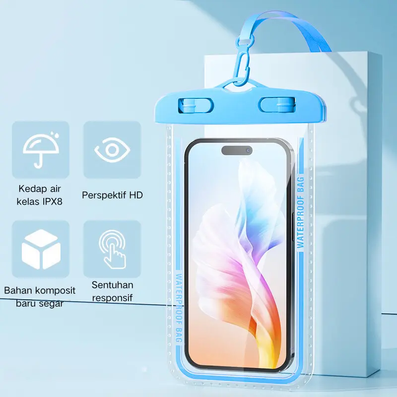 Kantong Anti Air HP SGS IPX8 adalah pilihan tepat untuk melindungi perangkat Anda. Dilengkapi dengan tali gantungan, kantong ini memastikan perangkat Anda tetap aman.