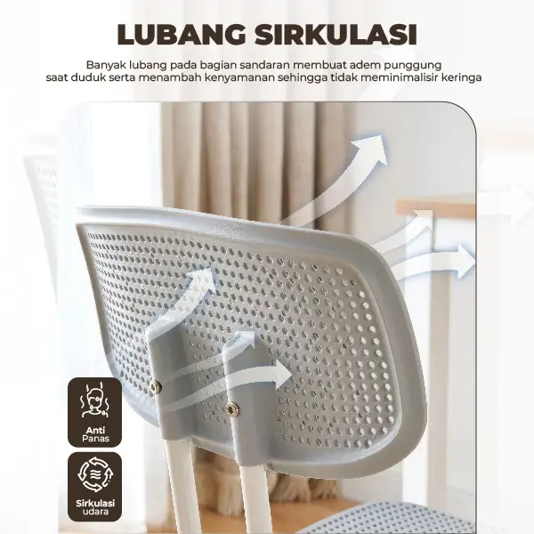 Kursi Kantor Minimalis cocok untuk ruang kerja, belajar, atau home office. Dengan struktur yang kuat dan desain berlubang pada dudukan dan sandaran, kursi ini memberikan sirkulasi udara yang baik serta kenyamanan saat duduk dalam waktu lama.