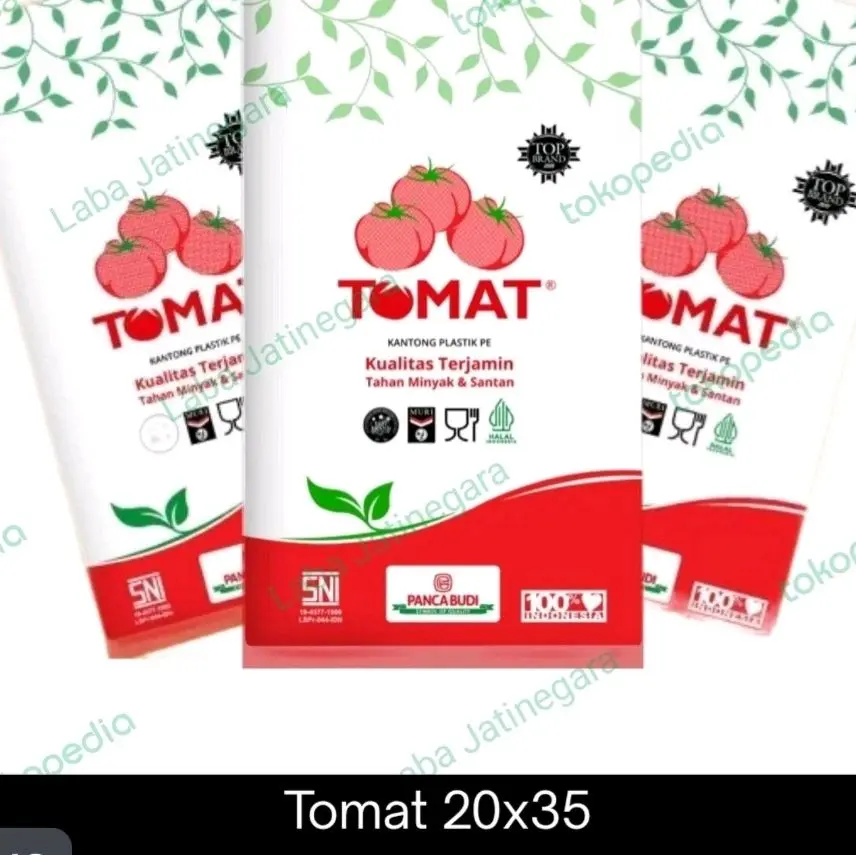 Produk ini adalah plastik tomat dengan ukuran 20 x 35. Merknya adalah tomat.