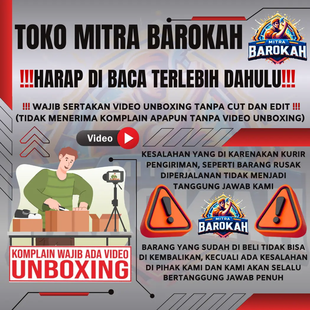 *****apa bila tidak ada video maka di anggap RETURN BATAL.Setiap Claim atau RETURN wajib Sertakan UNBOXING Atau VIDEO Waktu pertama kali buka PAKET