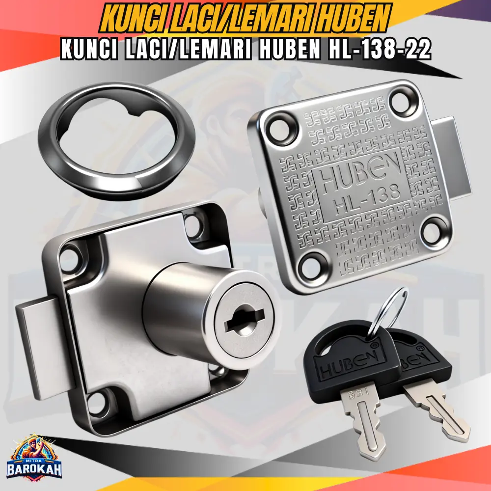 Untuk kebutuhan keamanan pada lemari, laci, atau penyimpanan penting lainnya, Huben HL-138-22 hadir sebagai pilihan yang tepat. Dibuat dengan desain kerangka padat (solid body construction), kunci ini menawarkan struktur yang lebih kokoh, stabil, dan awet dibanding kunci konvensional.